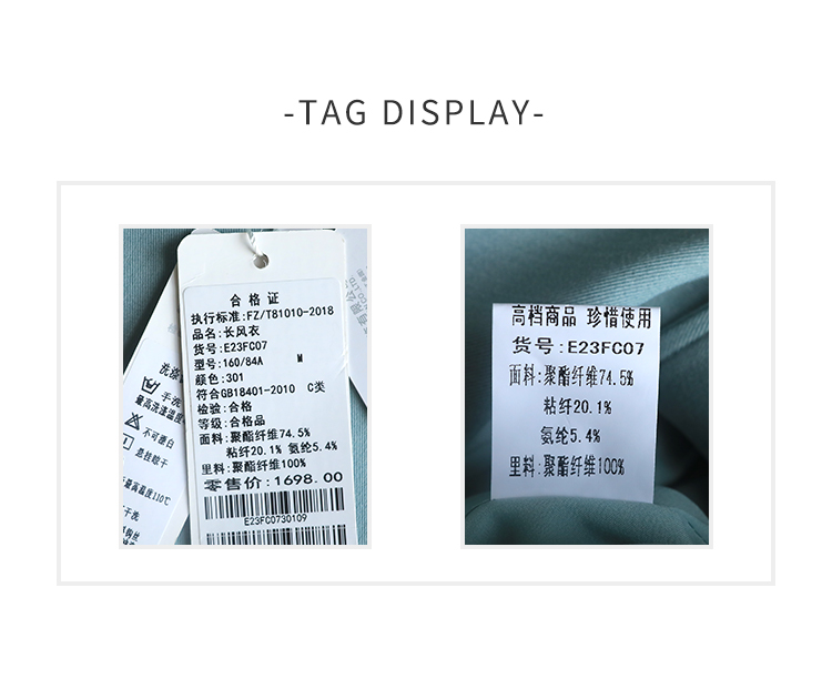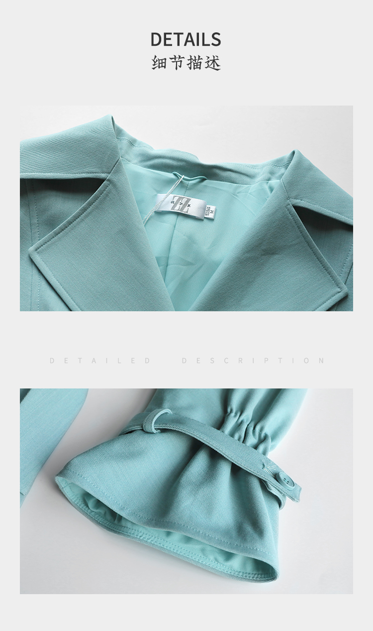 佐尔美2022秋冬新款 气质时尚百搭卡其色蓝色长风衣女E23FC07