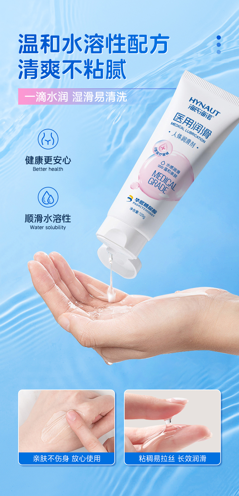 海氏海诺 人体润滑剂120g 医用润滑油剂夫妻房事用品私处欲望增强水医用滋润正品免洗