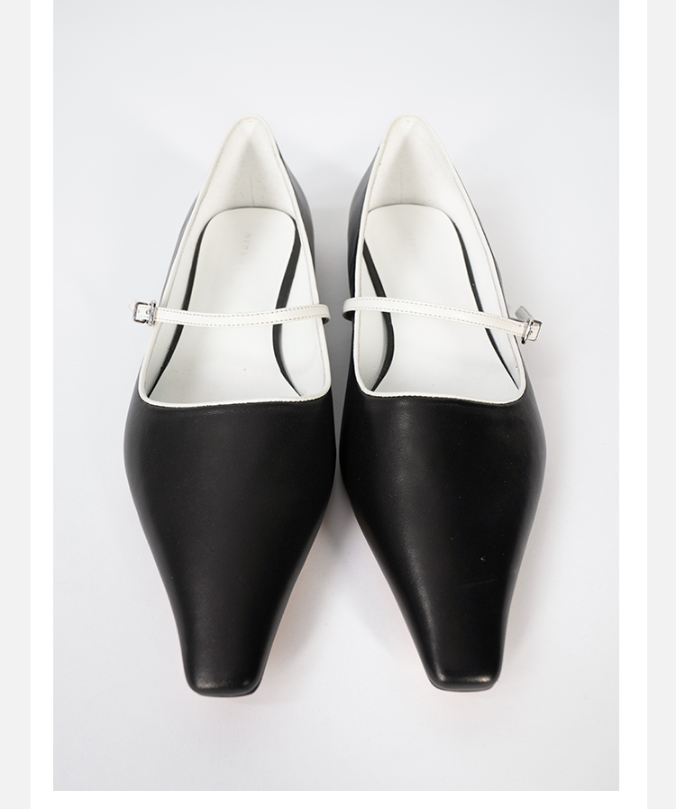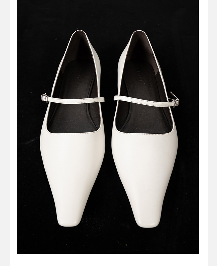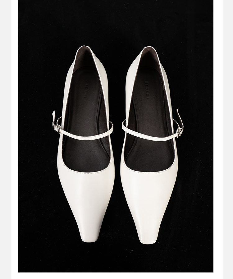 HIDEMI 复古极简方尖头浅口一字扣玛丽珍平底鞋