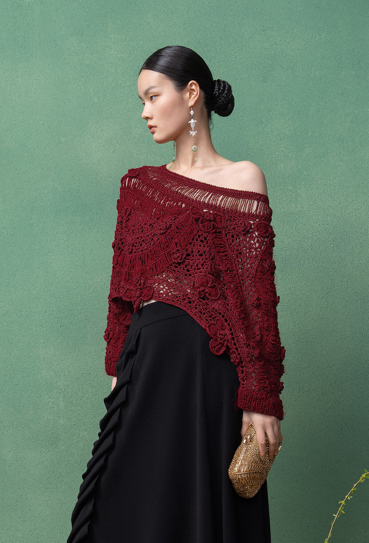 【林栖设计小店】(现货)桑蚕丝镂空披肩手工钩花多色优雅百搭2025春夏新品上衣女1952347