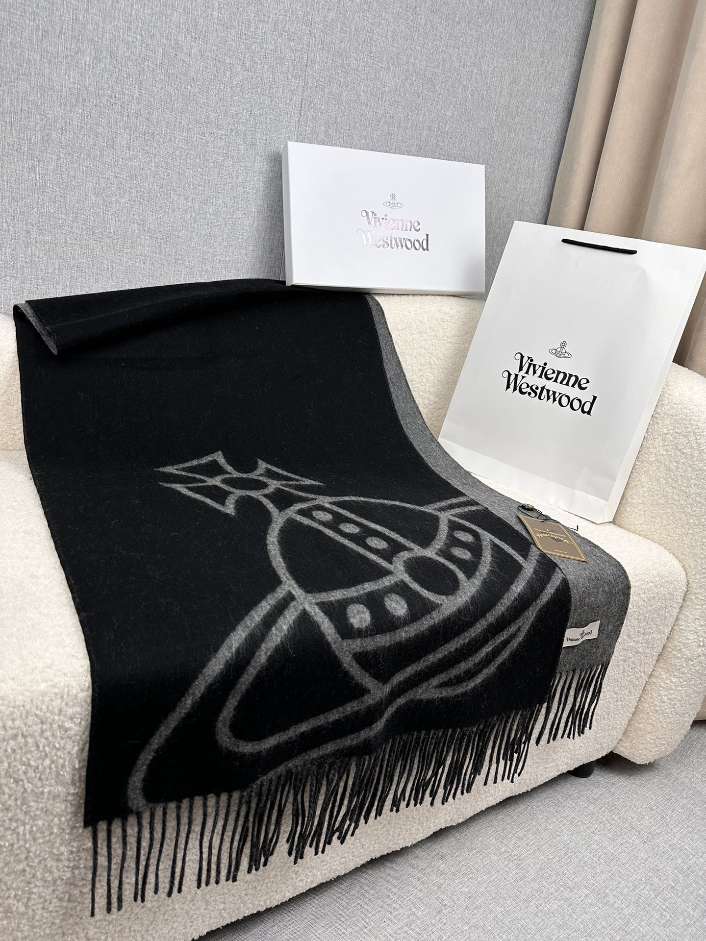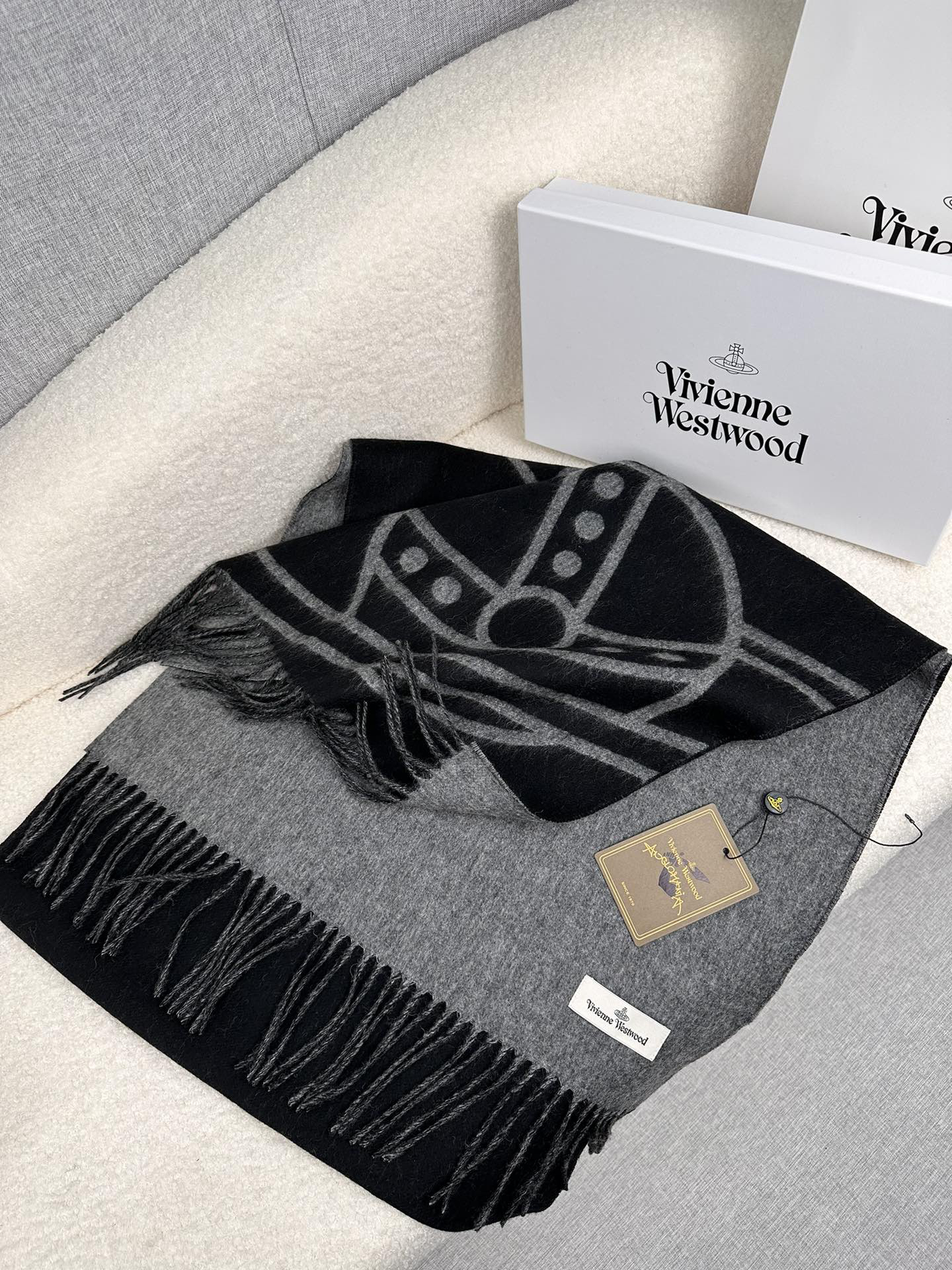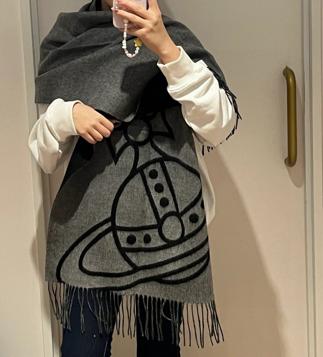 秋冬特惠💰280 英国朋克教母 西太后围巾 Vivienne Westwood”最爱的土星❗❗从精神上,Vivenne Westwood才是最能代表英国人的时尚品牌.本季强推的一款产品.❗大“土星”Logo提花,土星的意义也是和西太后的设计理念是一致的.面料采用了95%最具张力羊毛,5%羊绒.尺寸:200*50cm,双面设计,手感柔软不扎手,超级受追捧的爆款!