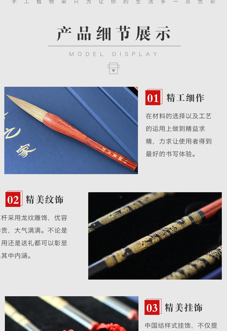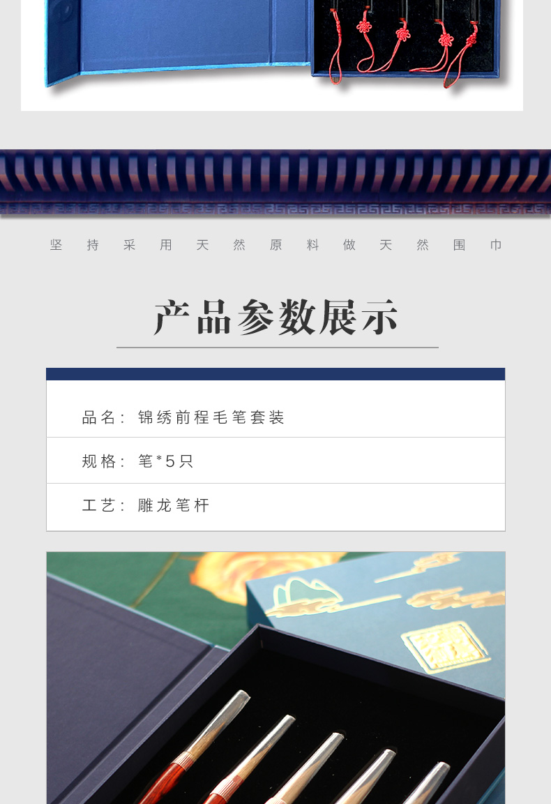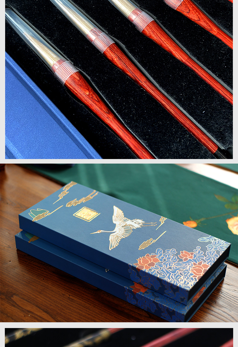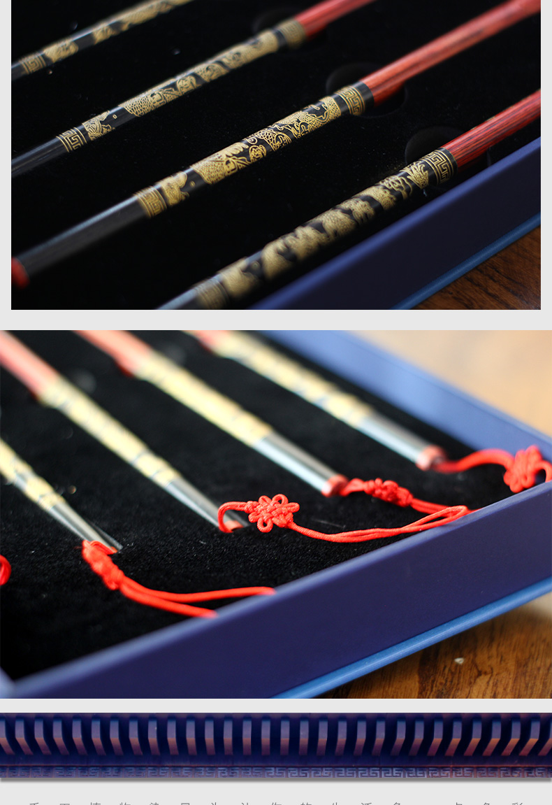青云染 毛笔礼盒套装5只装 奢华黑檀毛笔 龙杆毛笔 手工毛笔