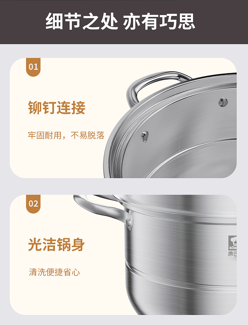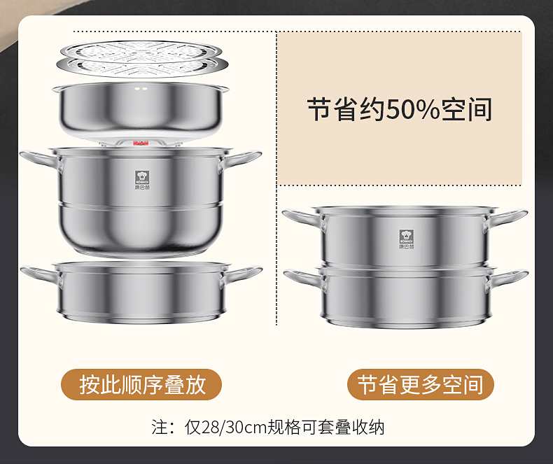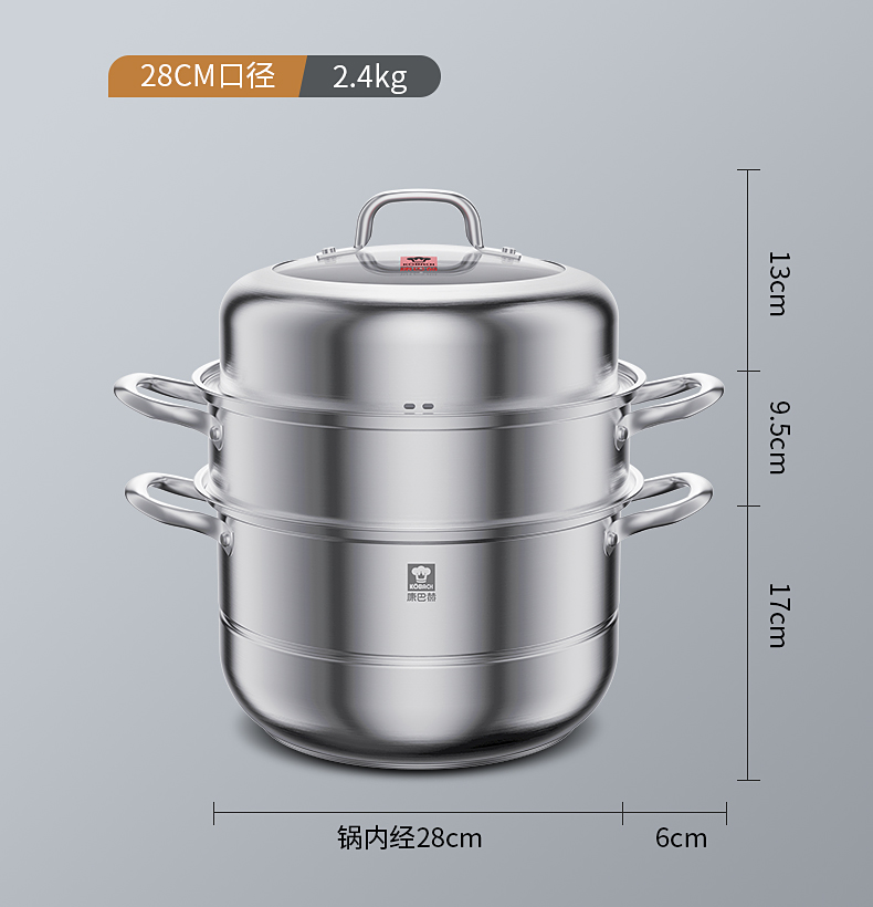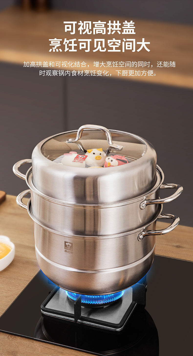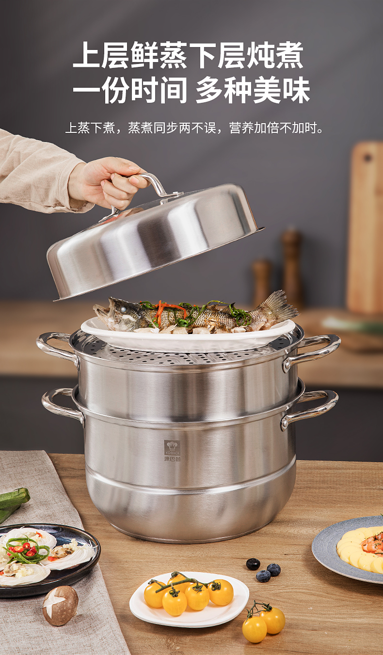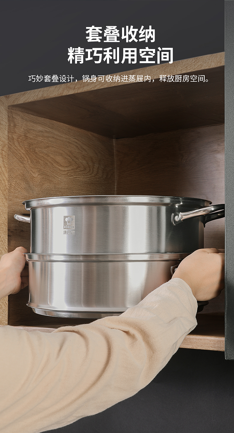 康巴赫蒸味鲜系列易收纳大容量不锈钢蒸锅