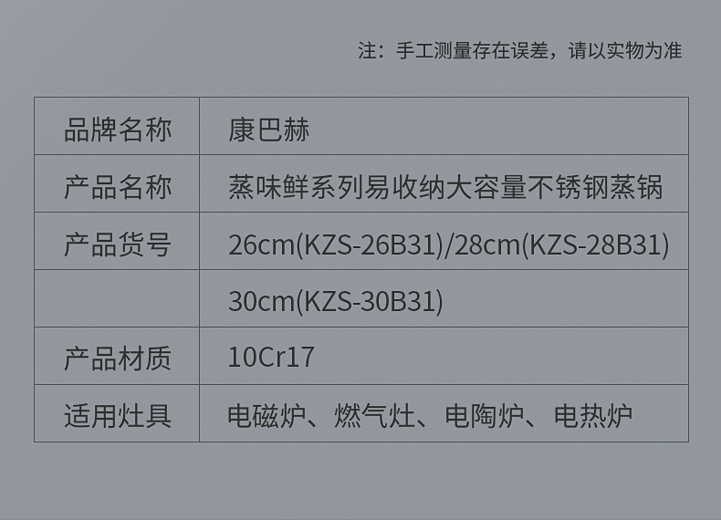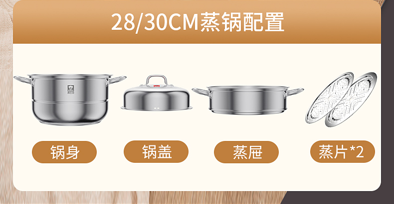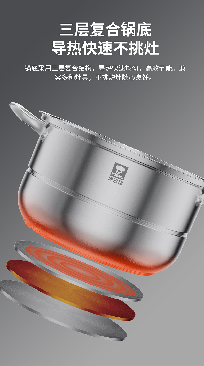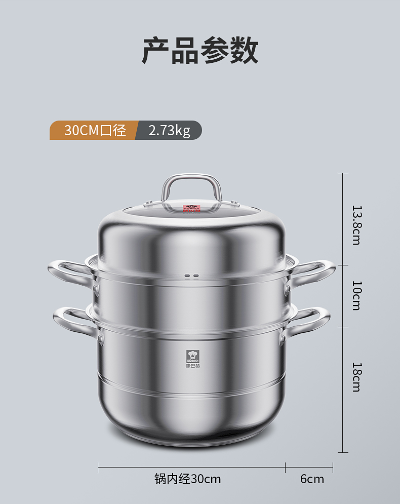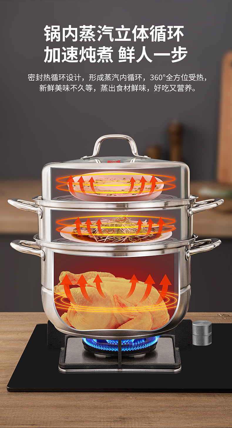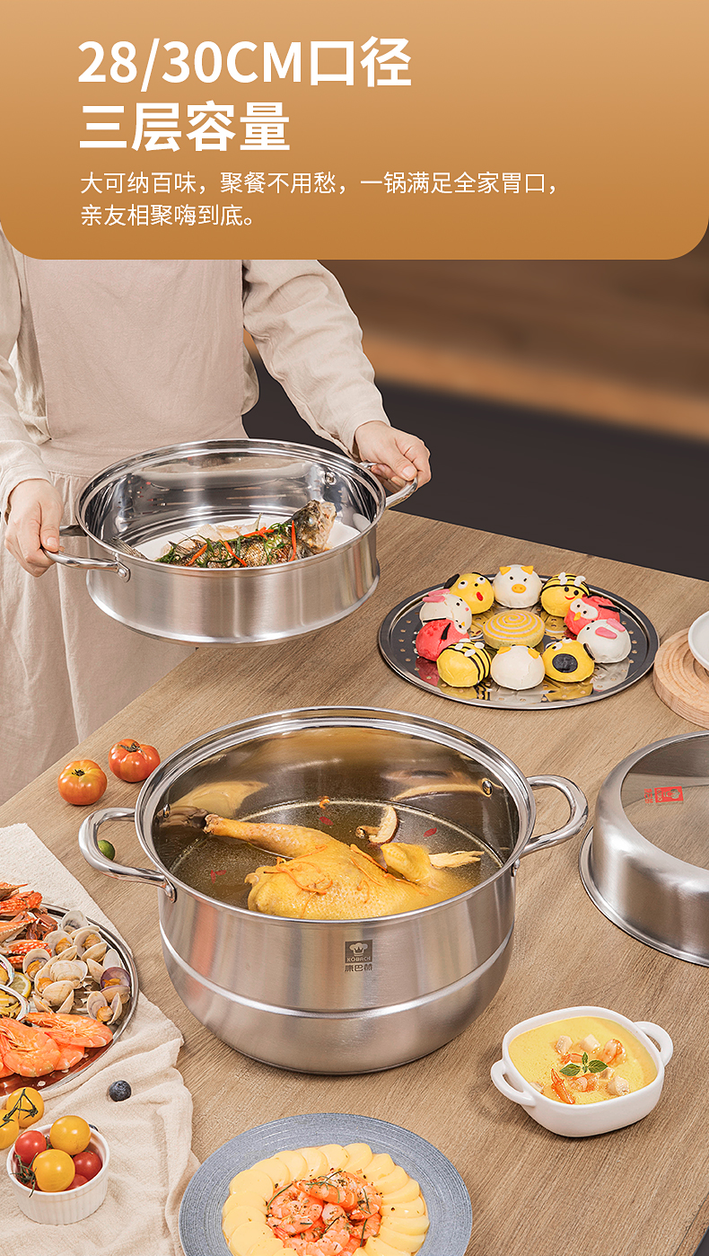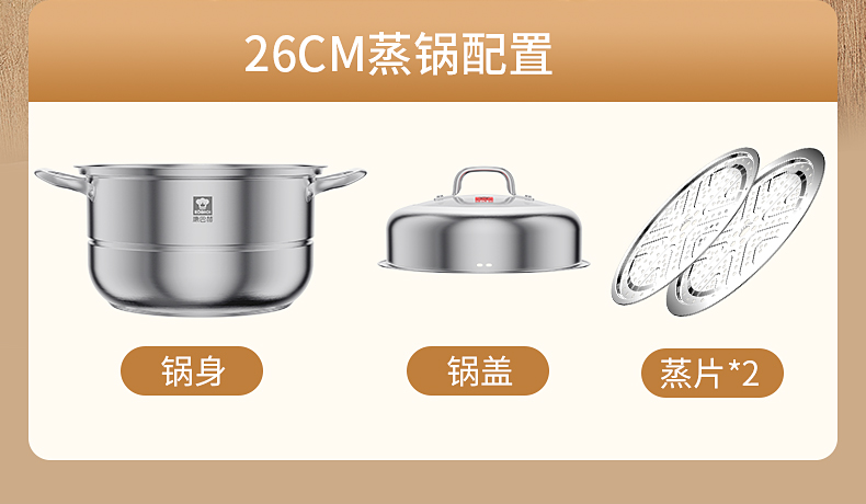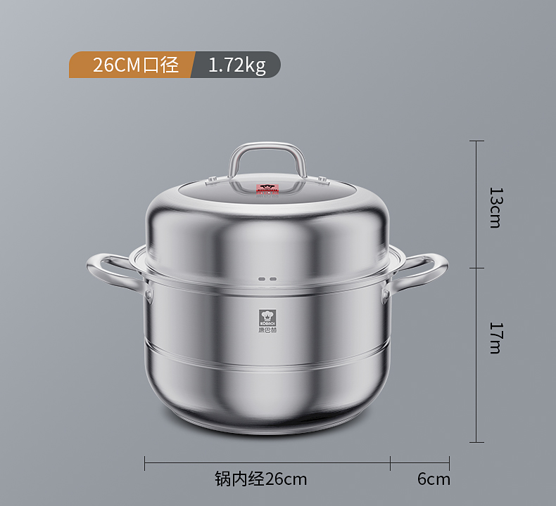 康巴赫蒸味鲜系列易收纳大容量不锈钢蒸锅