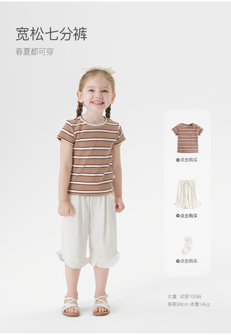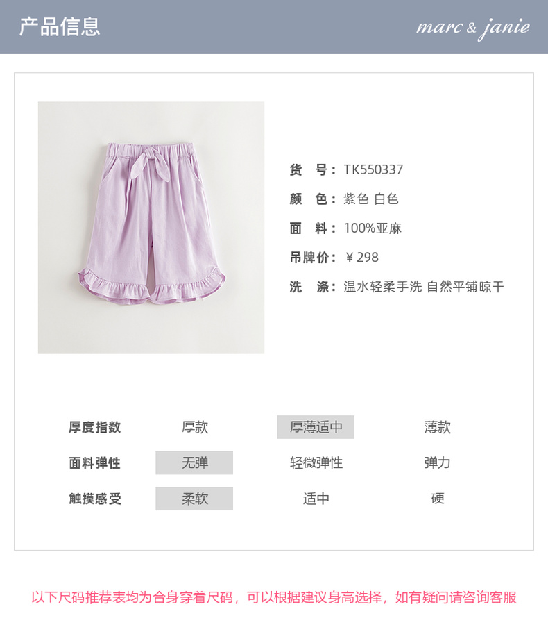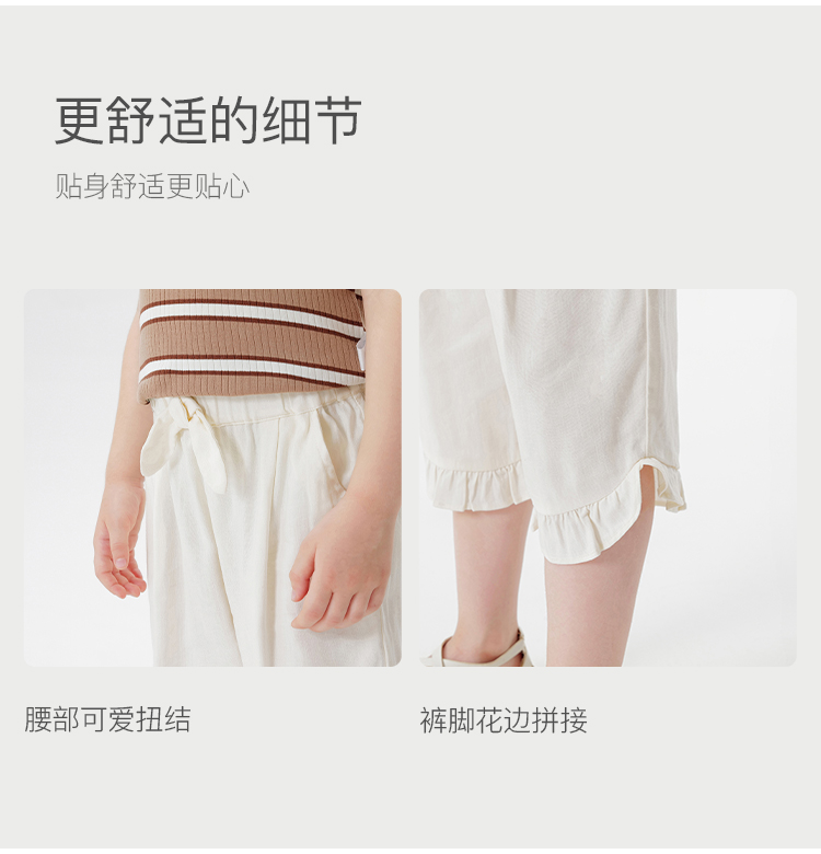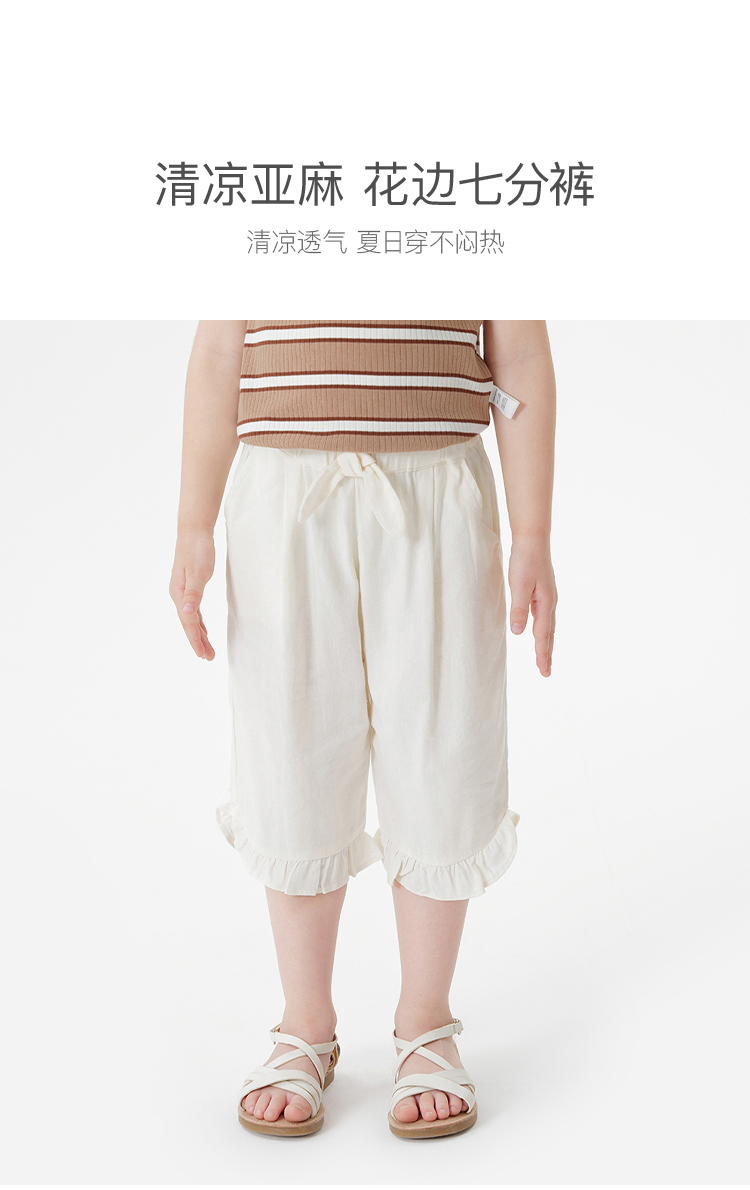 【天然亚麻】马克珍妮女童清凉花边七分裤宝宝裤子春夏新款550337