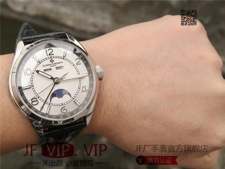 江诗丹顿伍陆之型FIFTYSIX 4000E/000A-B439 这款手表设计表达了康斯坦丁在1950年代展示的特别丰富的创造力 表壳混合了圆形表壳和龟背表壳的特点 夜光效果强 具有运动特点 数字时标和夜光条交错 装饰感时尚 采用日内瓦印记复刻2460 QCL/1 多功能自动机械机芯 40mm 精钢壳 原装折叠扣 背透 进口意大利小牛皮