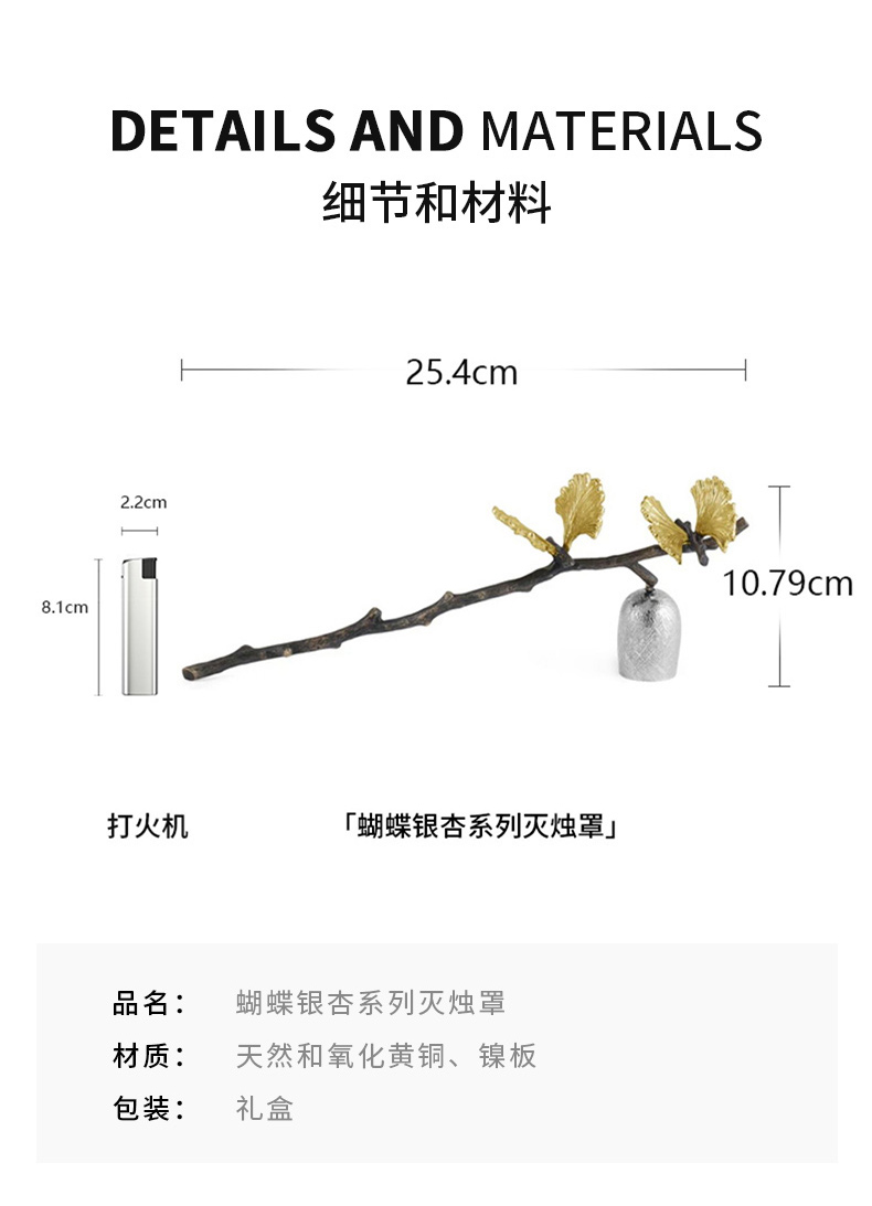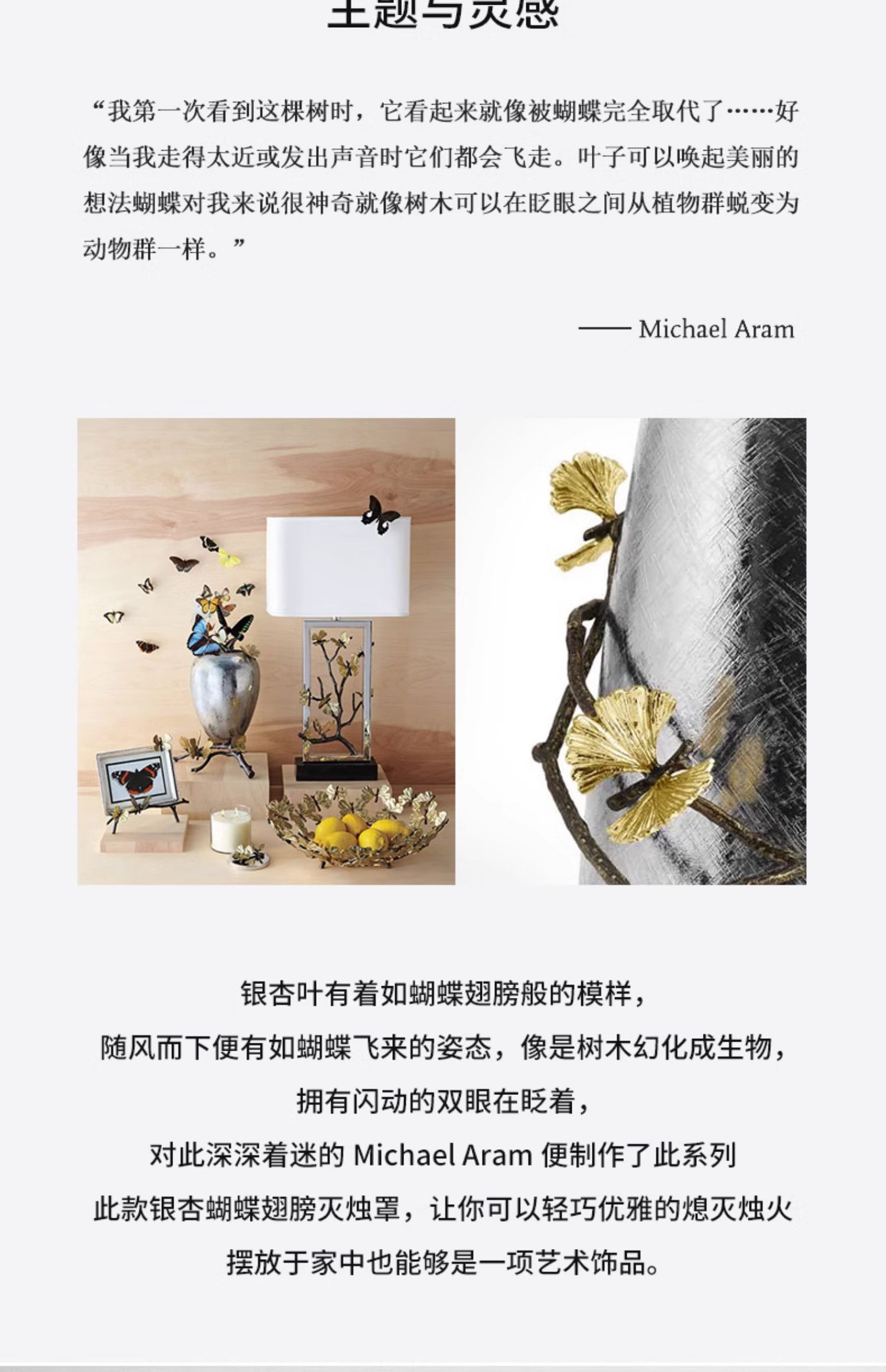 Michael Aram 蝴蝶银杏灭烛器 手工制作香薰蜡烛灭烛罩灭烛器生日礼物礼盒