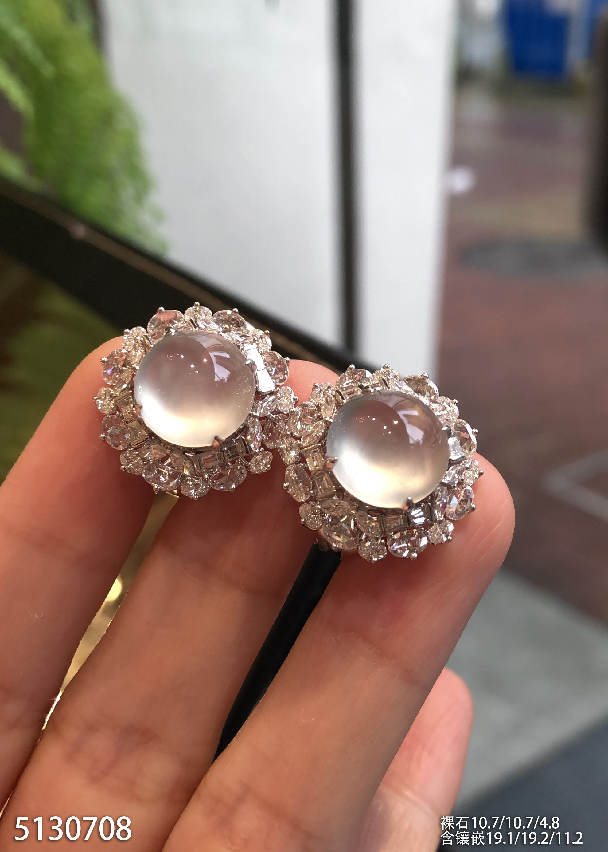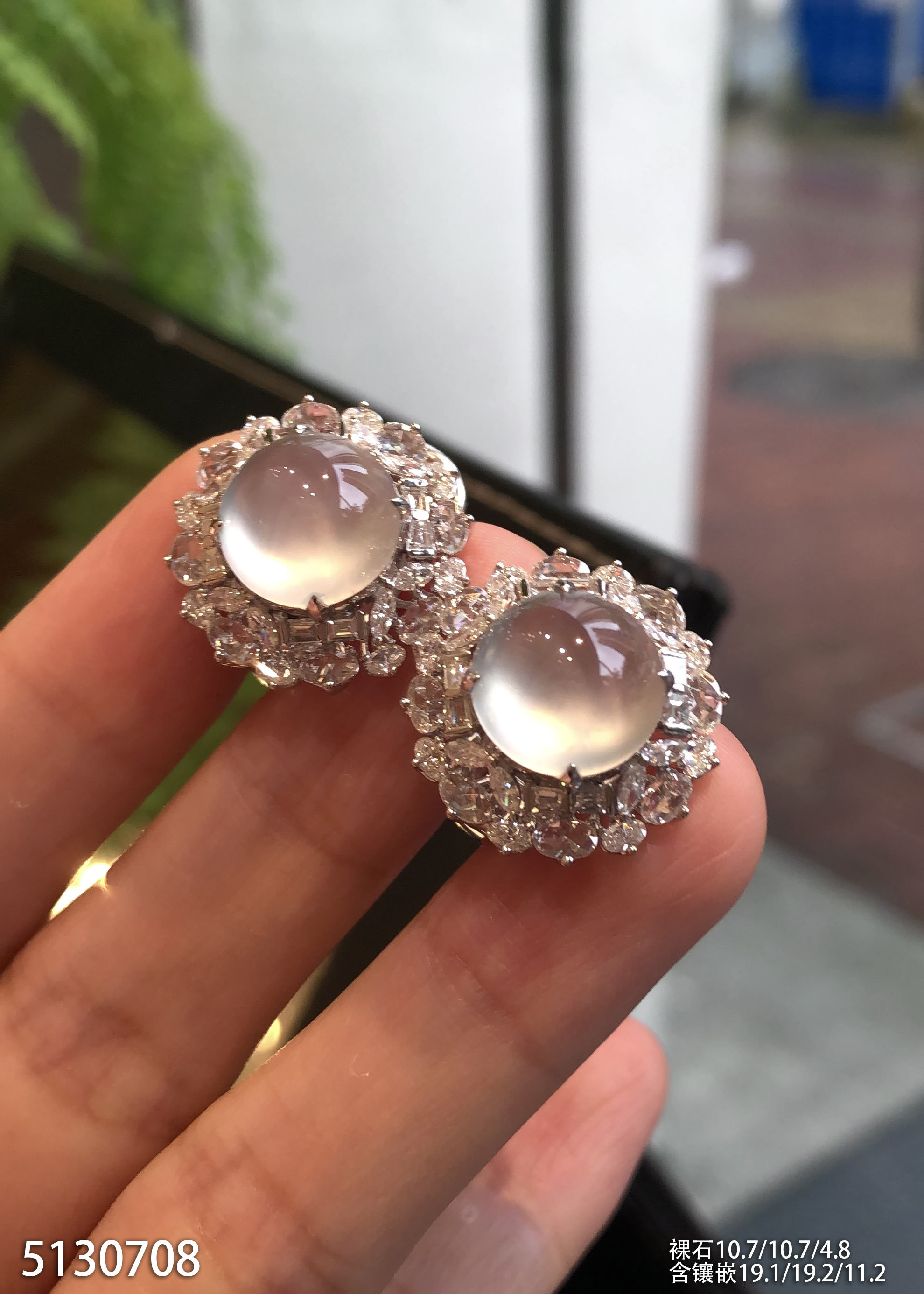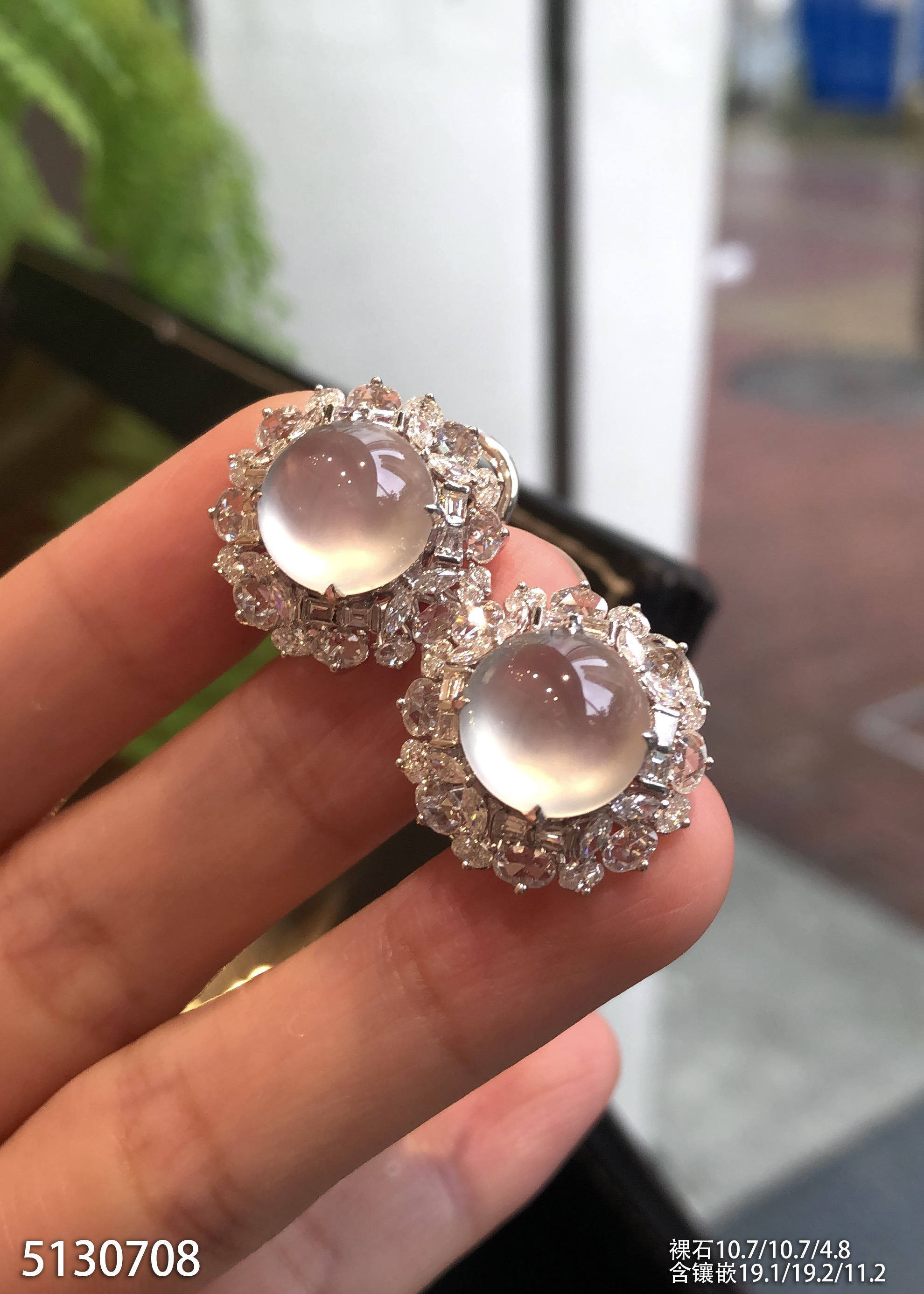 玻璃种蛋面耳钉 99999【5130708】