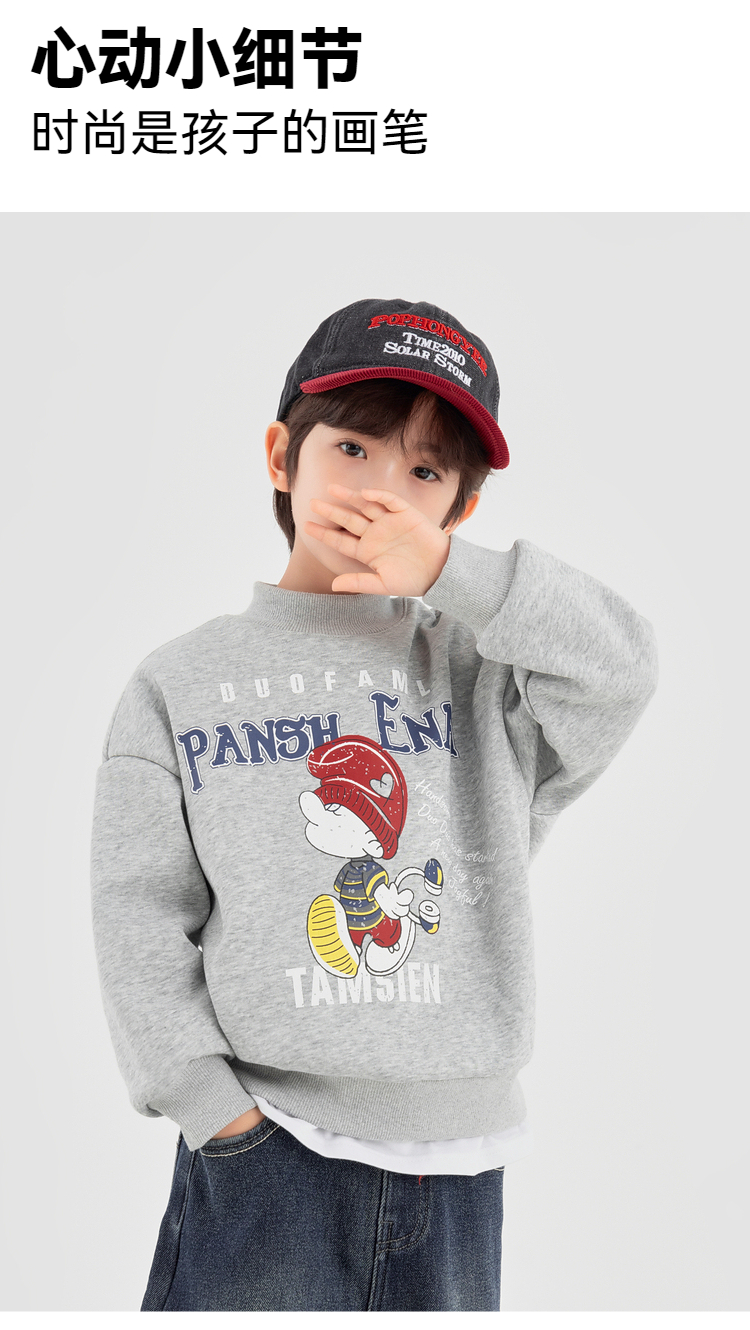 【件件底价,童装双倍积分】多多家男童加绒卫衣2025冬装新款秋冬儿童印花加厚一体绒男孩上衣11165