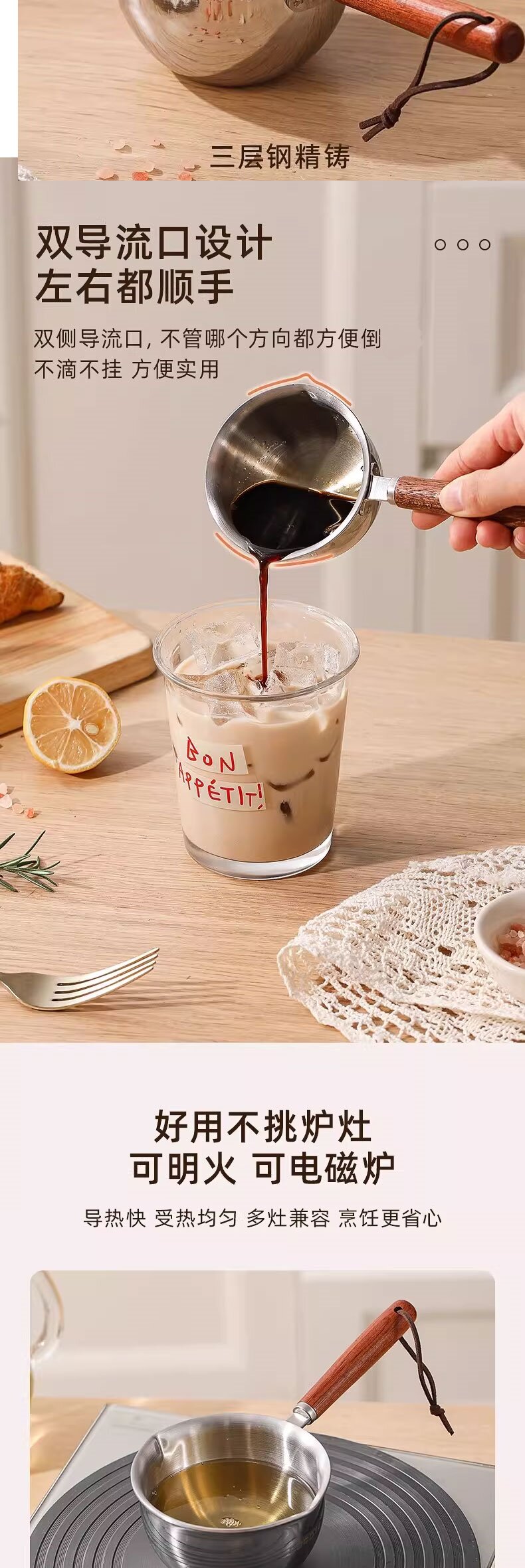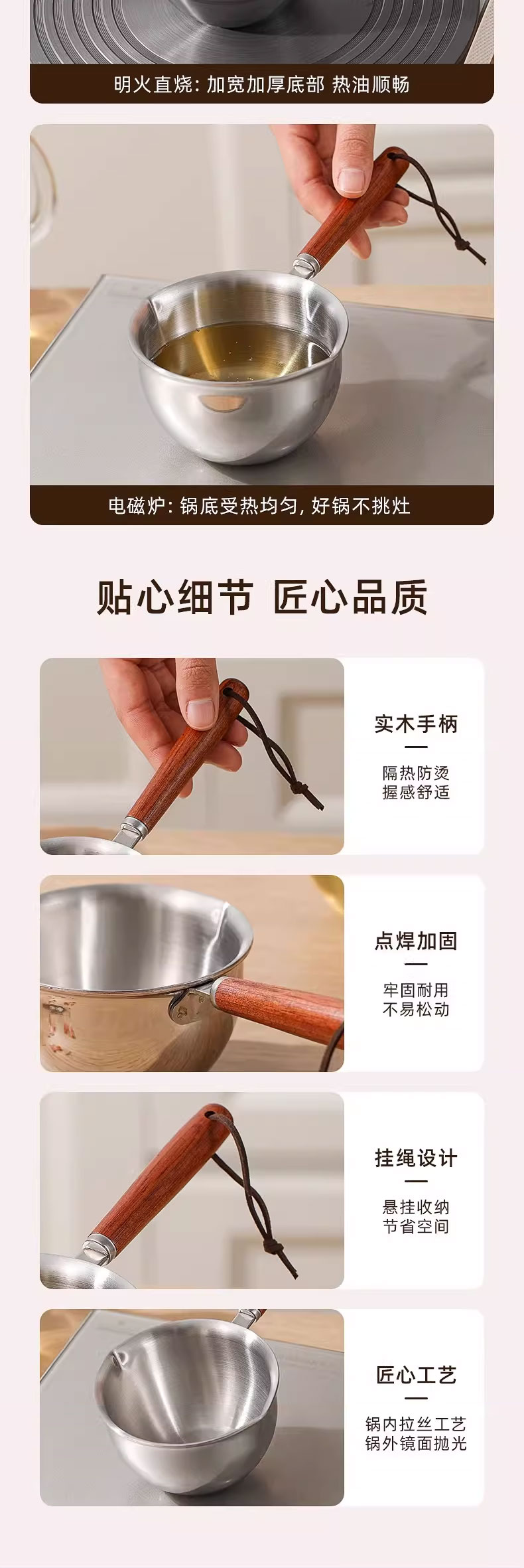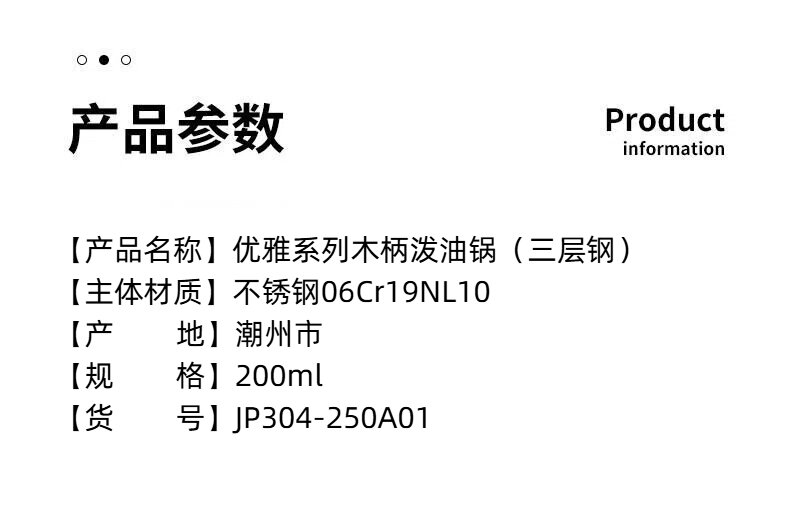 金湃木柄泼油锅三层钢JP304-250A01