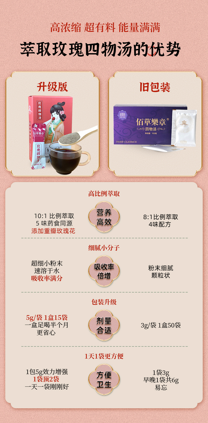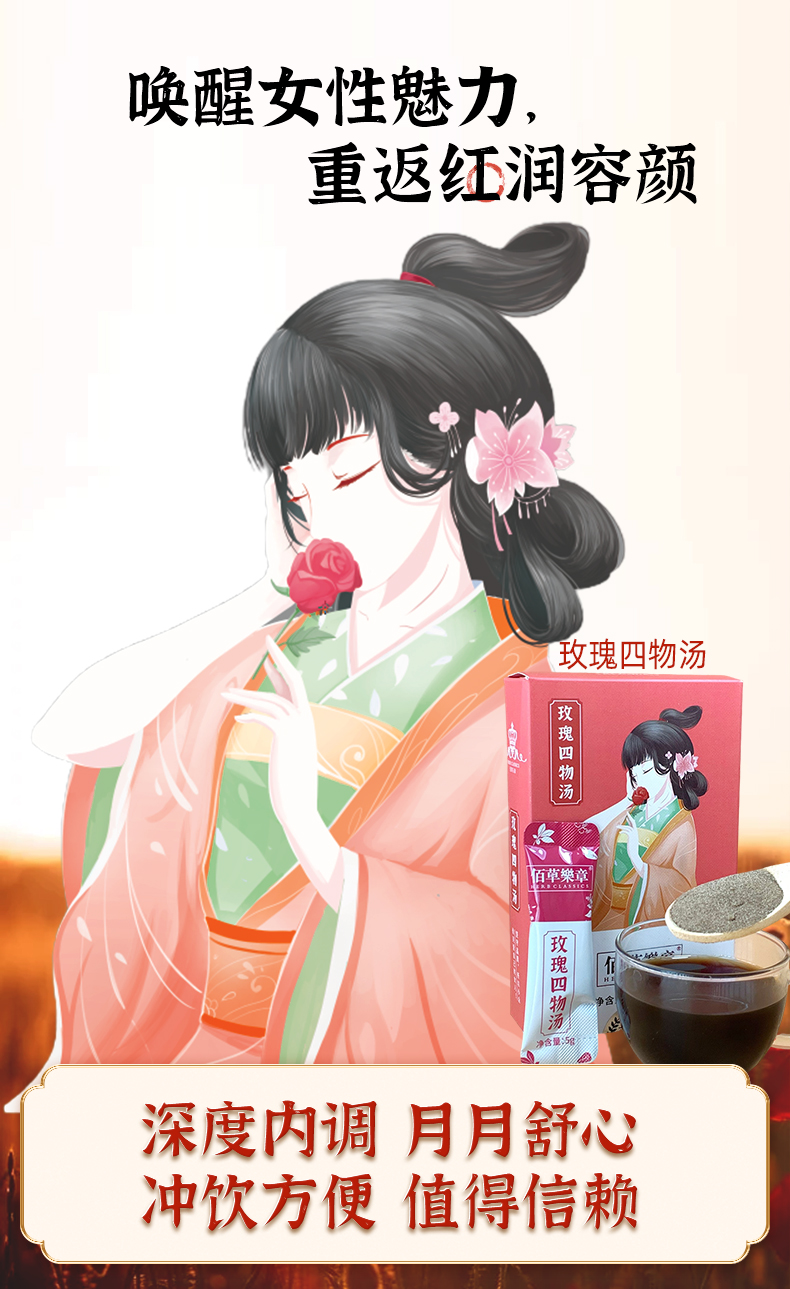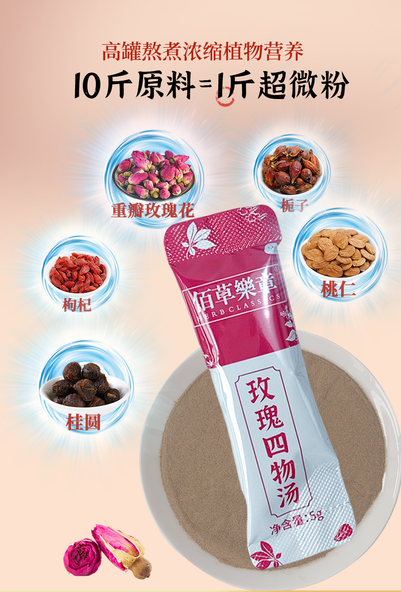 浓缩萃取玫瑰四物汤颗粒粉调理姨妈气血茶包非中药材养生膏