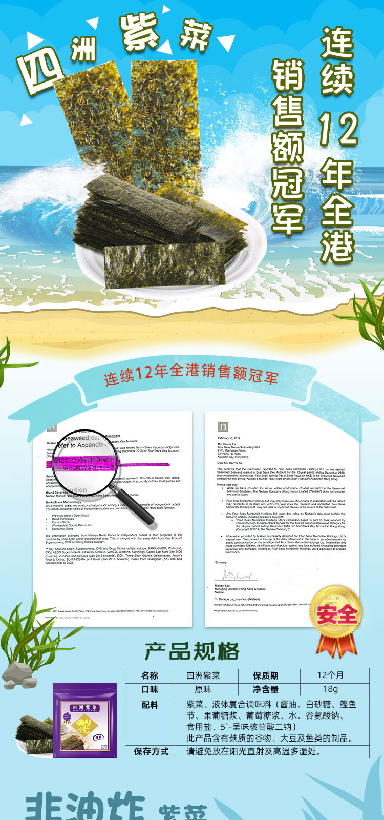 四洲紫菜24束(原味)18克*3包