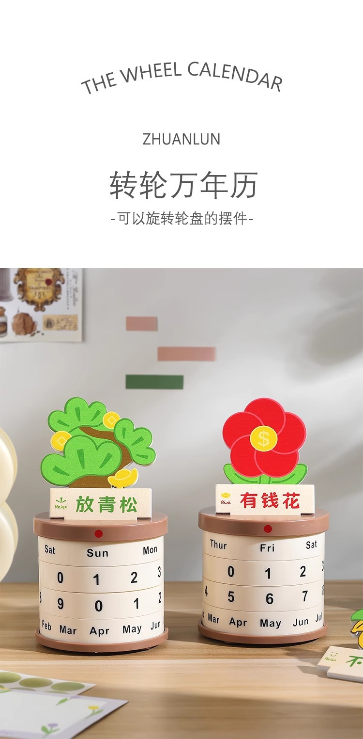 【可旋转的轮盘的摆件】转转万年历 放轻松日历家用桌面摆件 办公室工位装饰品 转转万年历创意生日礼物