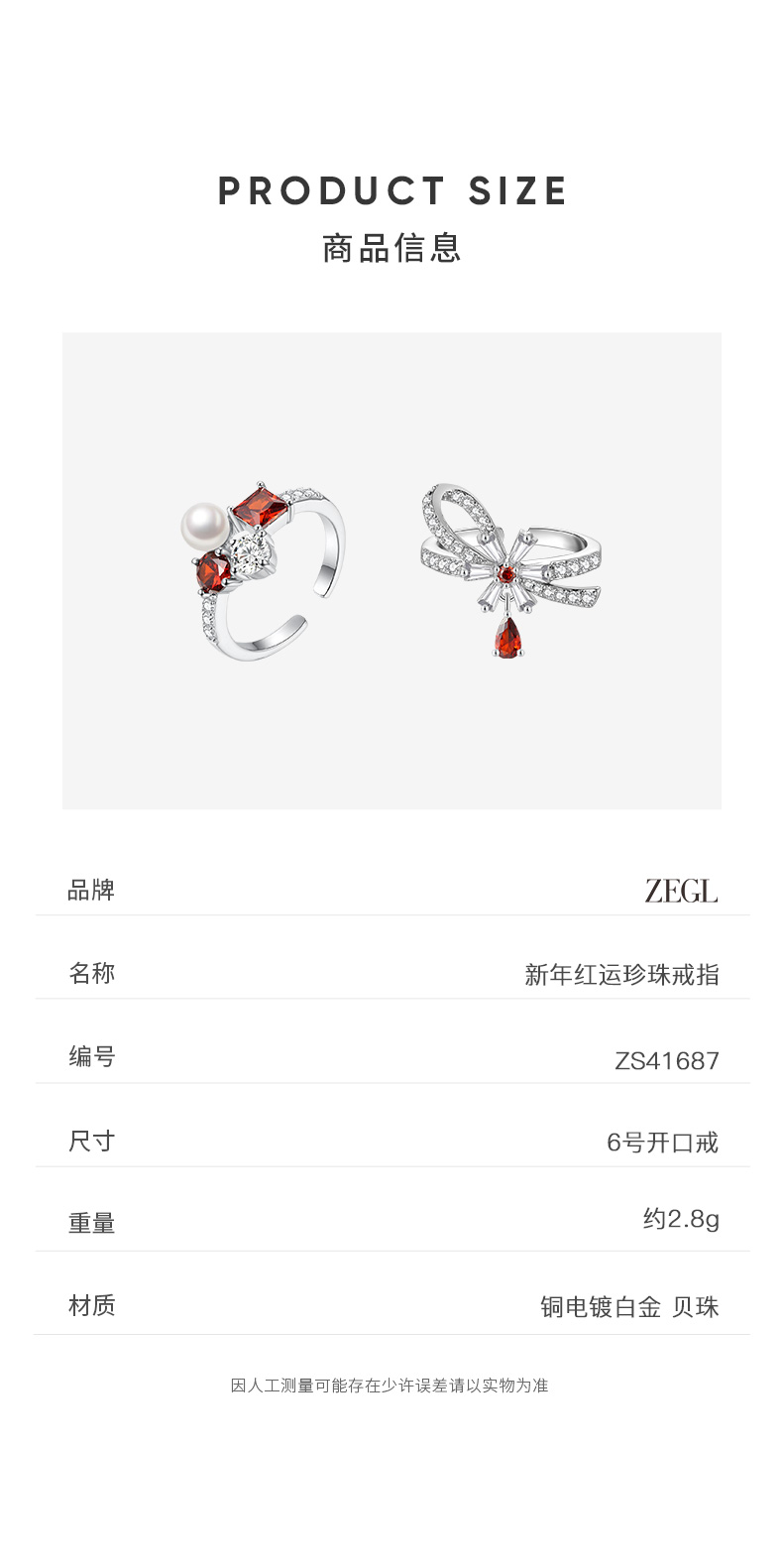 ZEGL设计师新年系列红色锆石戒指女小众设计轻奢高级感指环食指戒