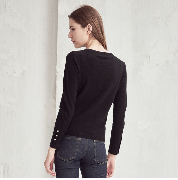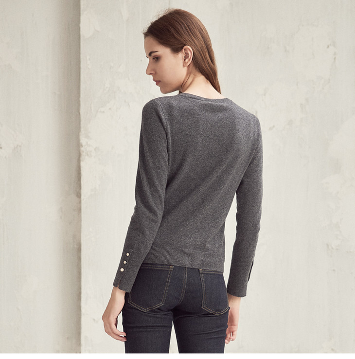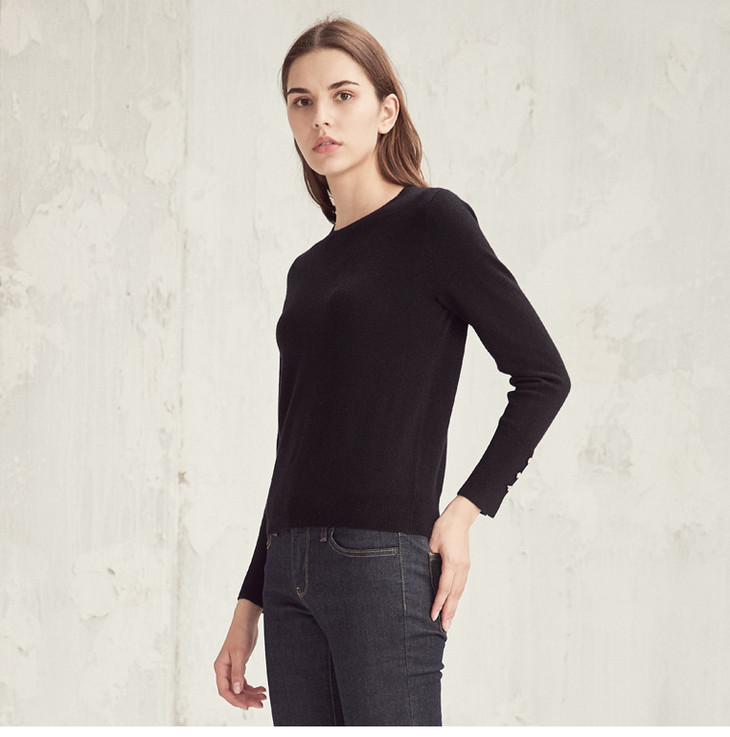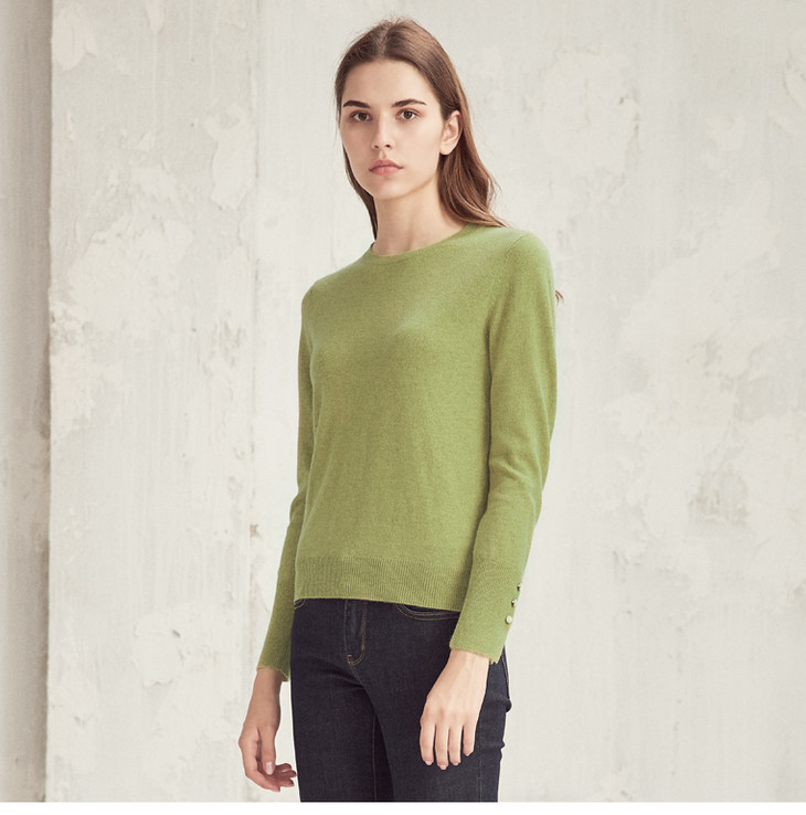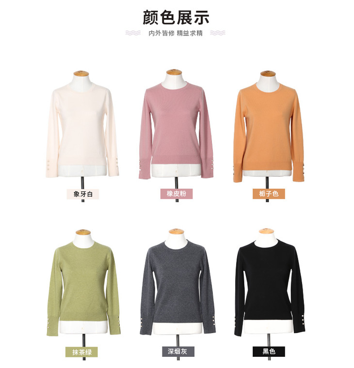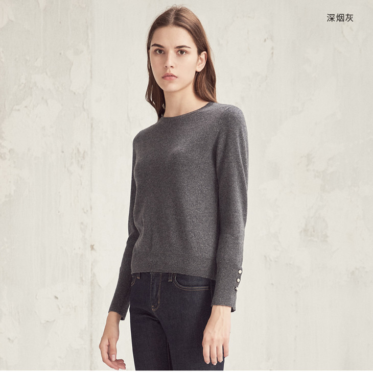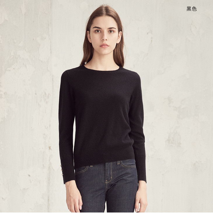 羊绒世家2020秋季新款女士圆领100%山羊绒衫时尚纽扣装饰内搭毛衣