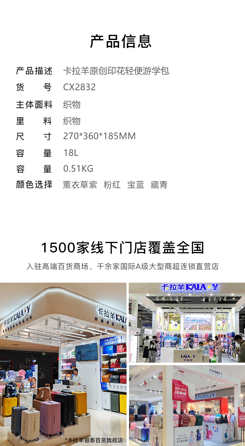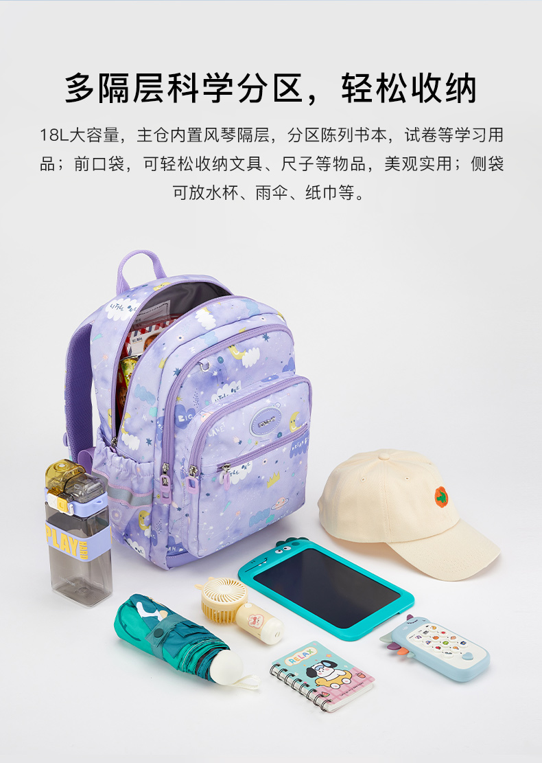 【卡拉羊书包丨适合1-4年级】多隔层科学区分,弹性压缩,轻松收纳!荷叶防泼水面料,好擦拭易打理!原创印花,童趣时尚!【KLY-X】