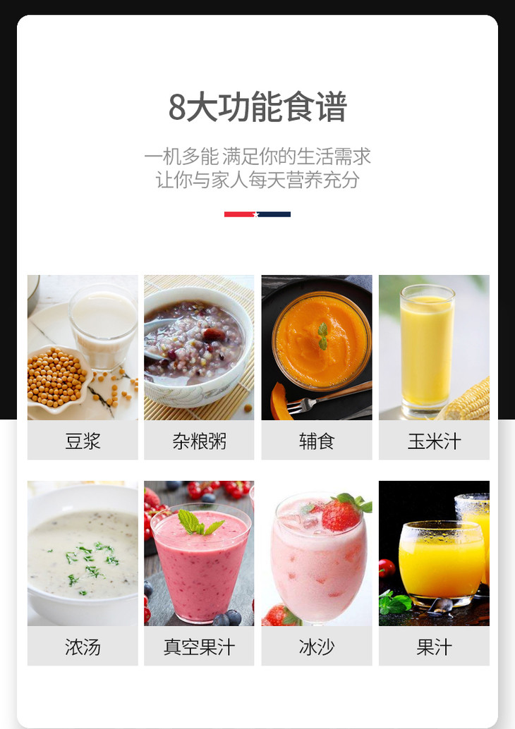 美国迈卡罗破壁机家用静音打粉迷小型新款真空豆浆机多功能料理机
