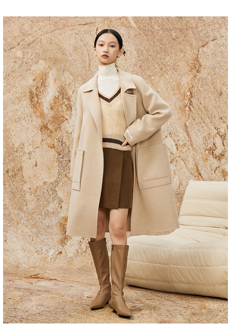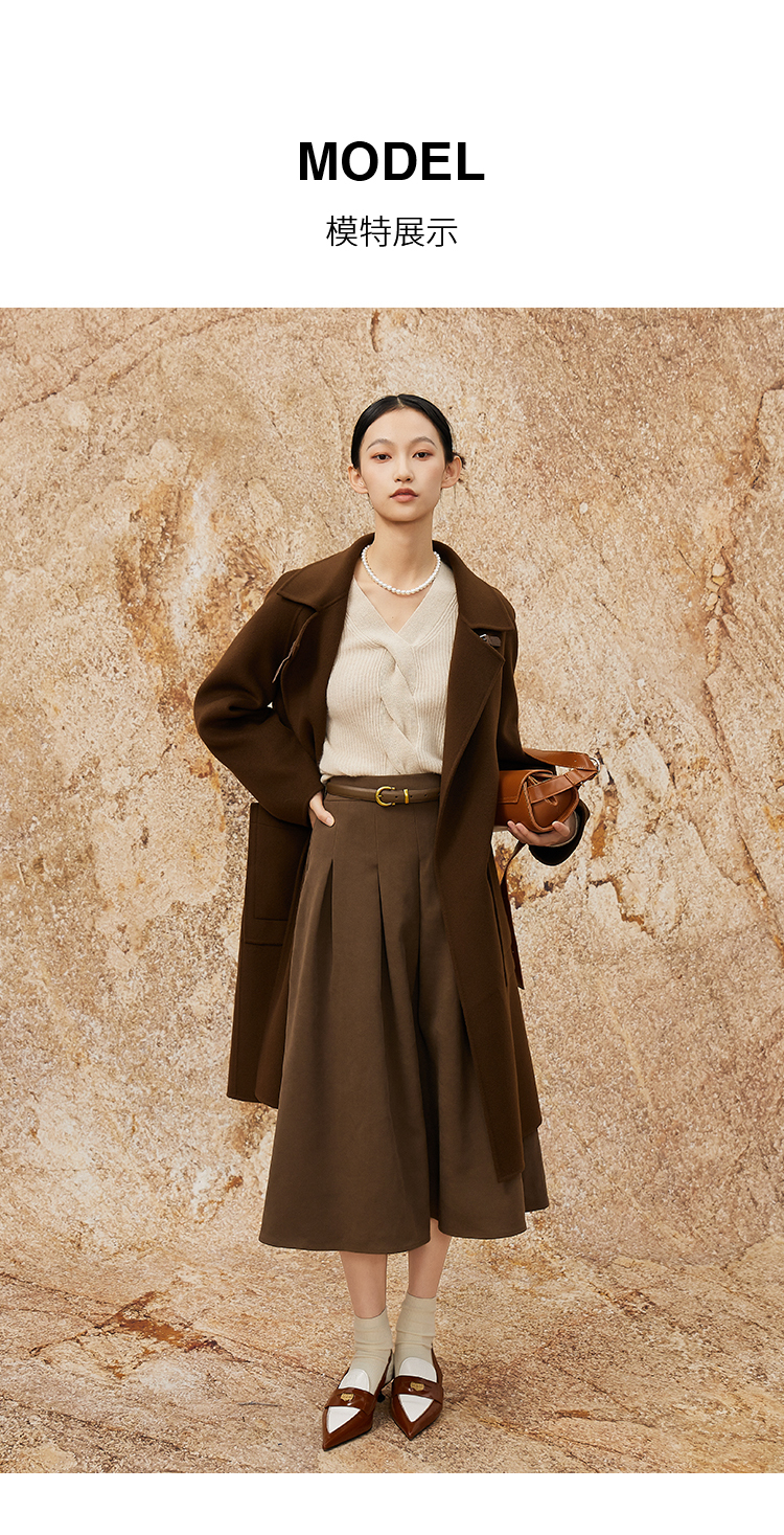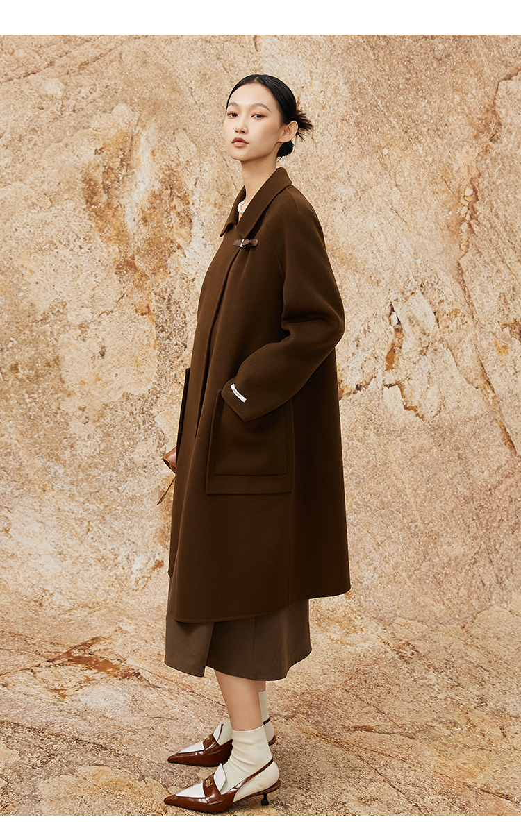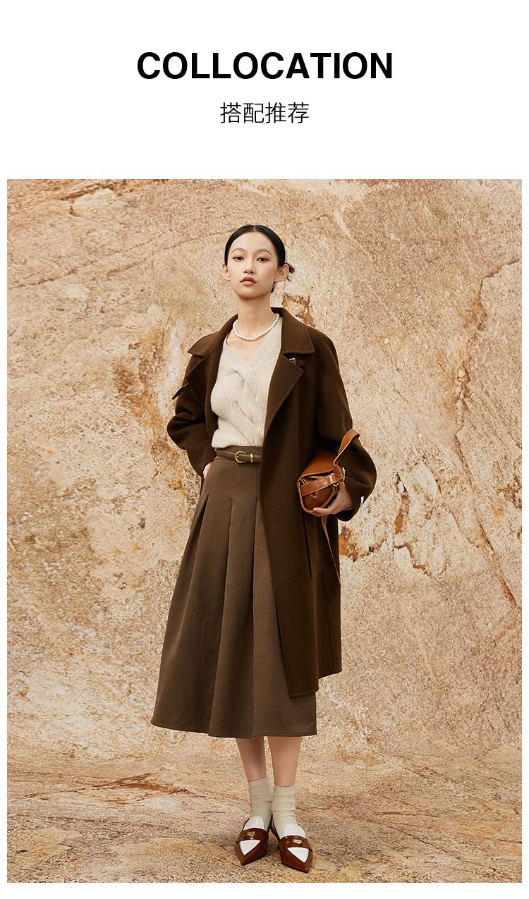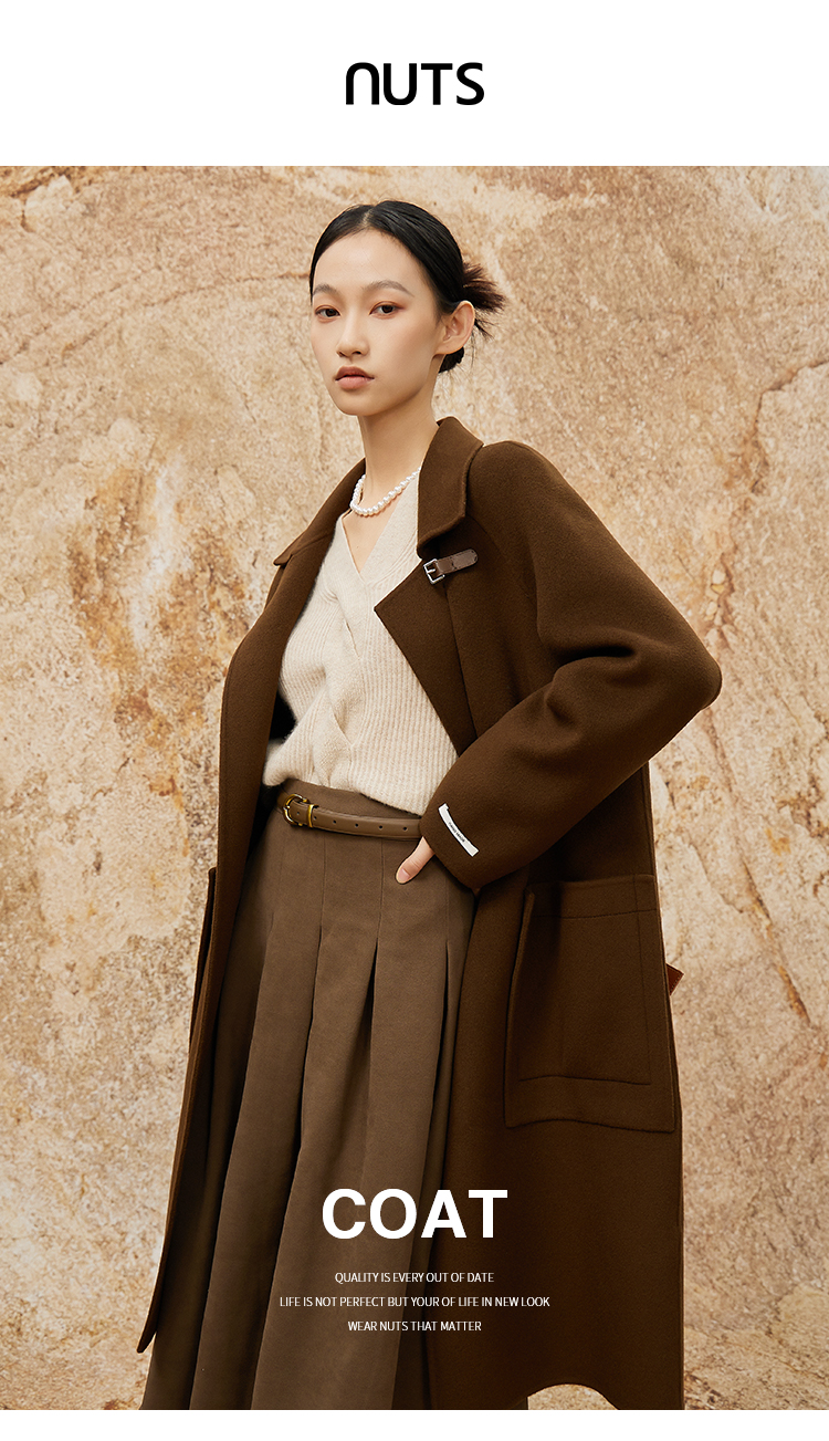 NUTS商场同款冬季新品复古时尚保暖气质手工呢料长外套女4491511A1