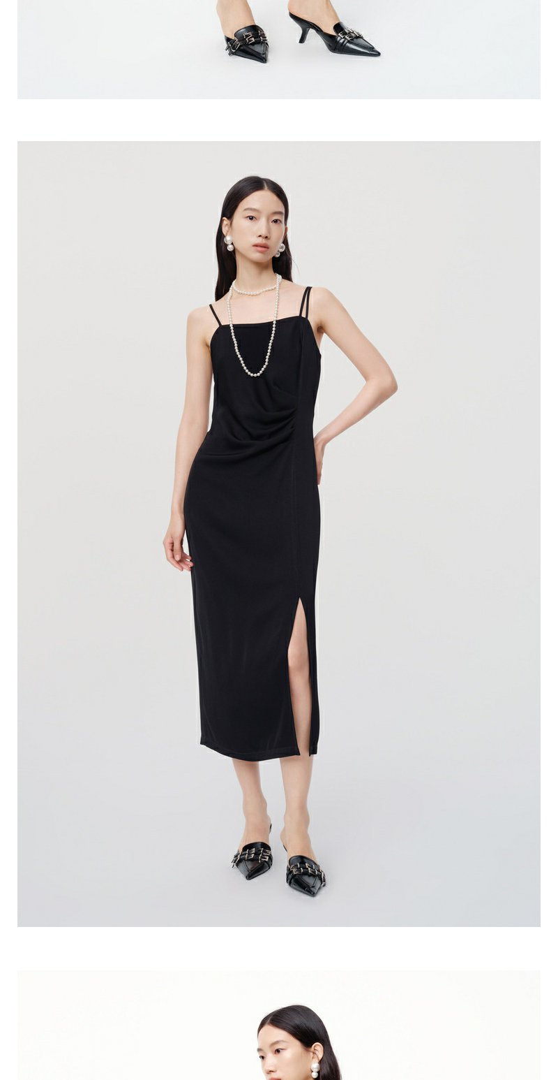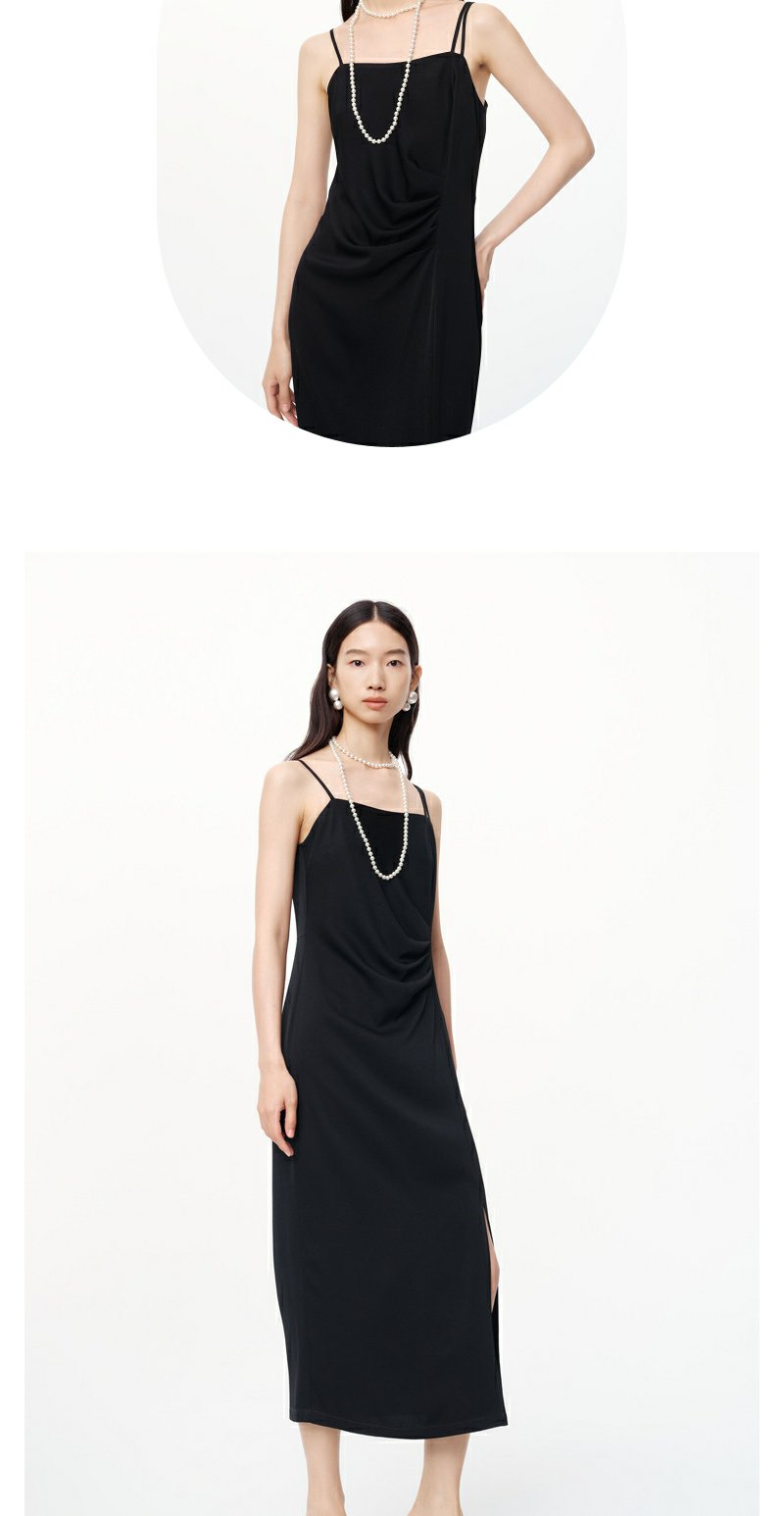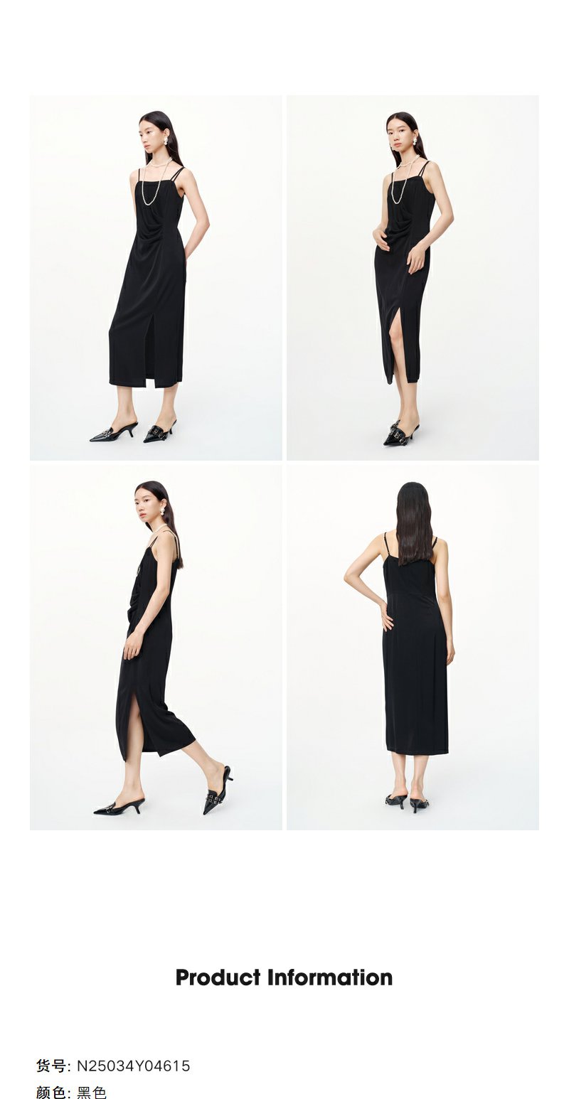 NEELLY纳俪商场同款春新款醋纤黑色设计感收腰吊带连衣裙女简约N25034Y04615