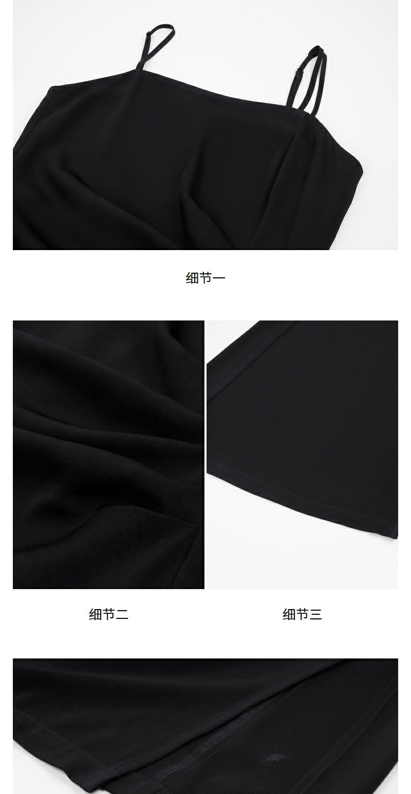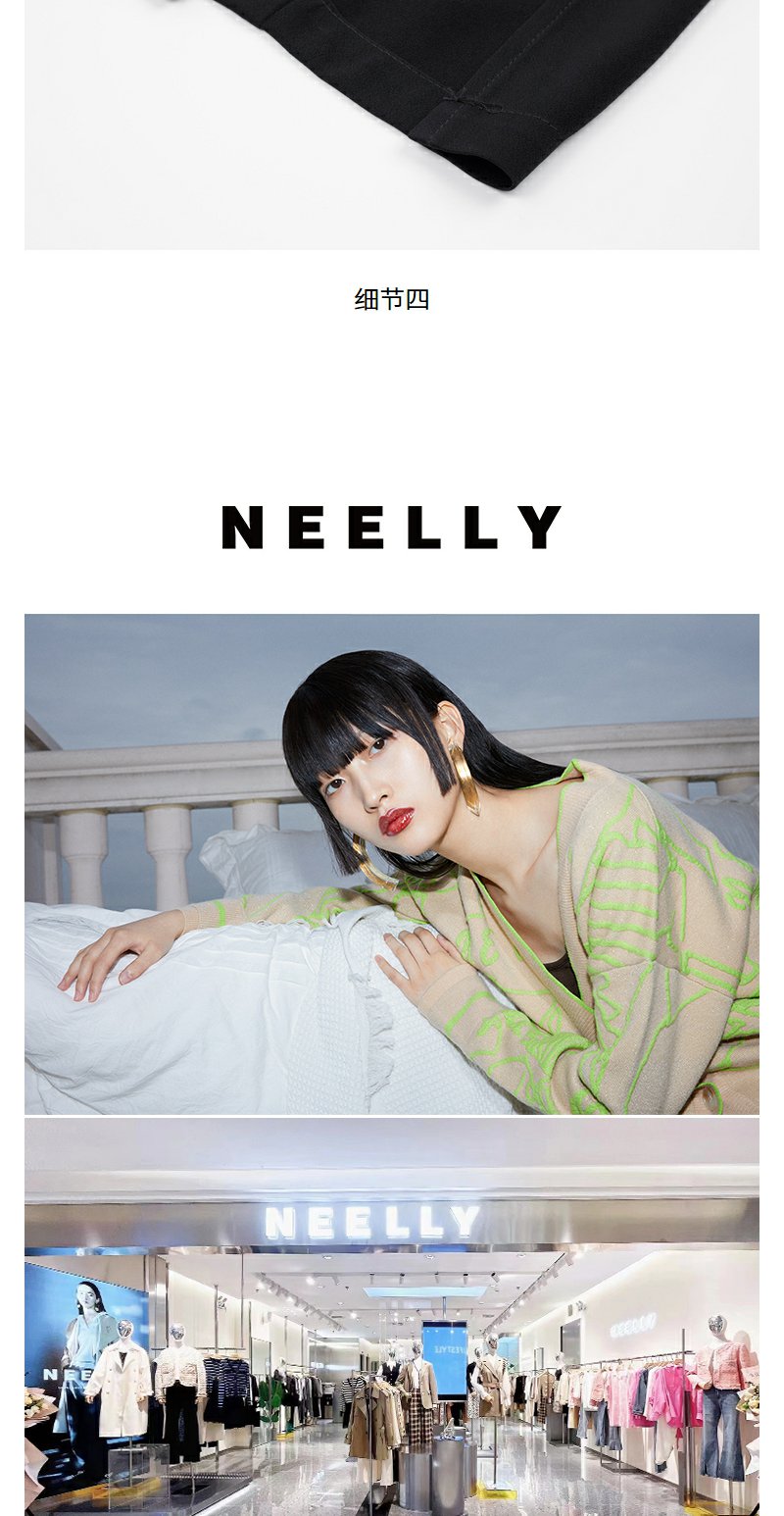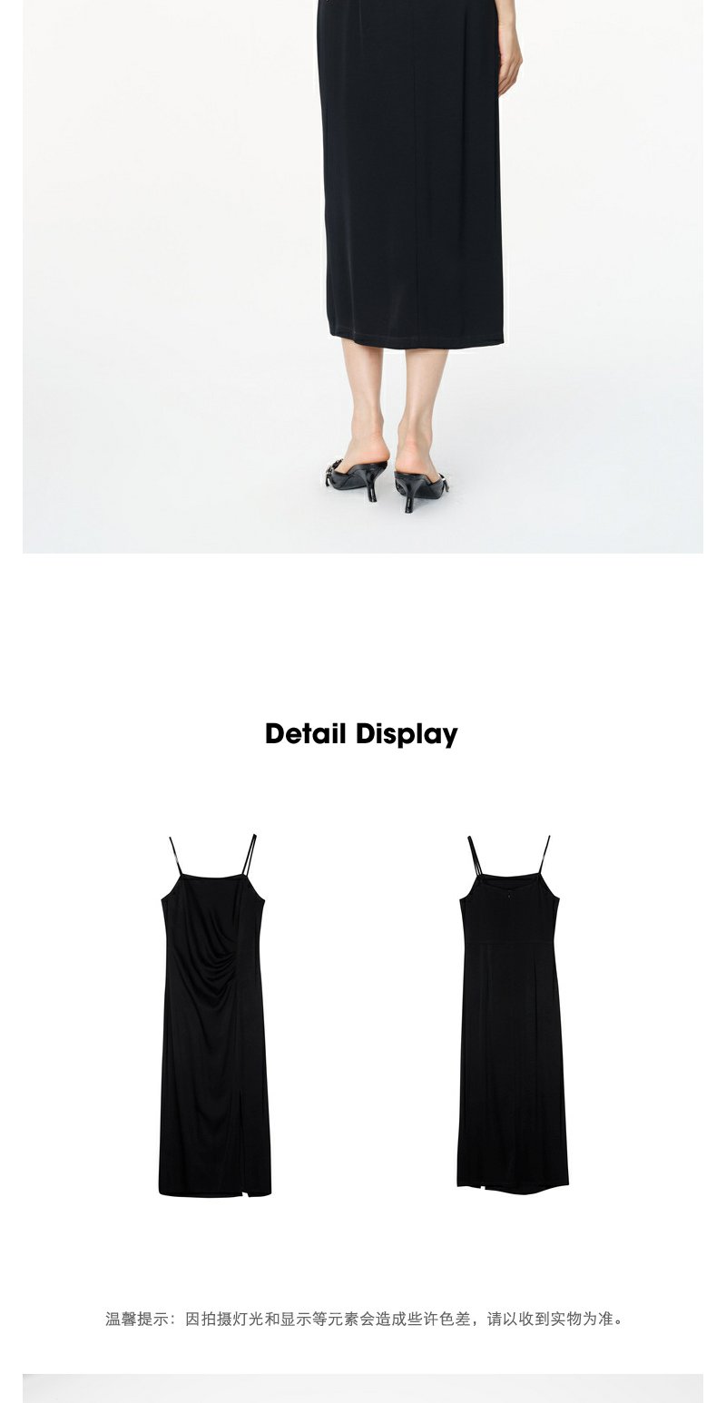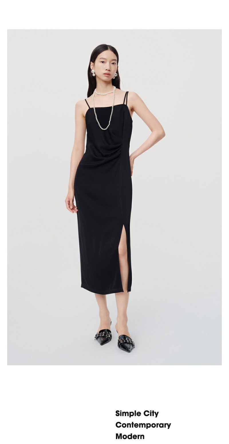 NEELLY纳俪商场同款春新款醋纤黑色设计感收腰吊带连衣裙女简约N25034Y04615
