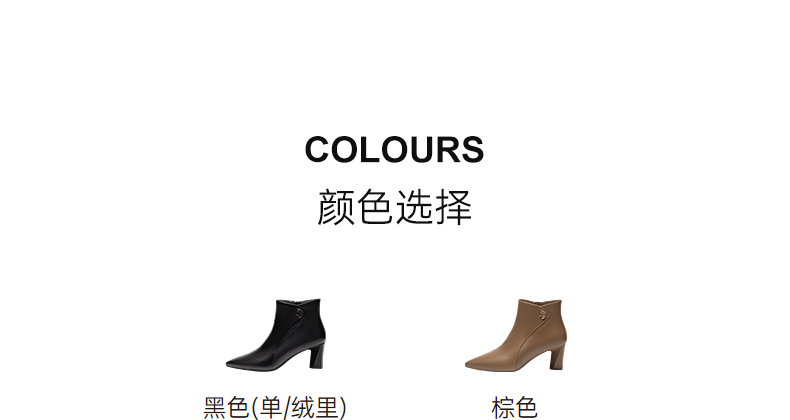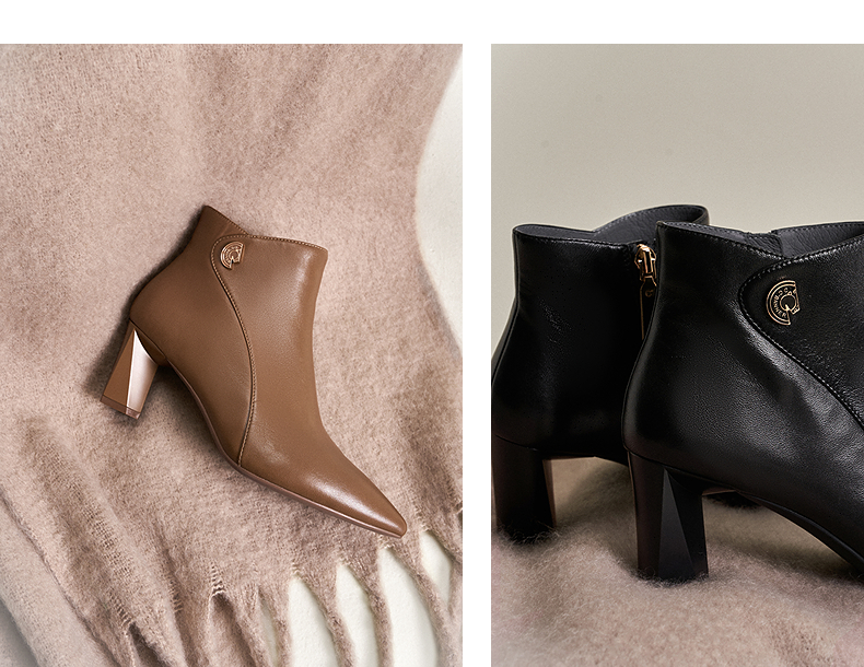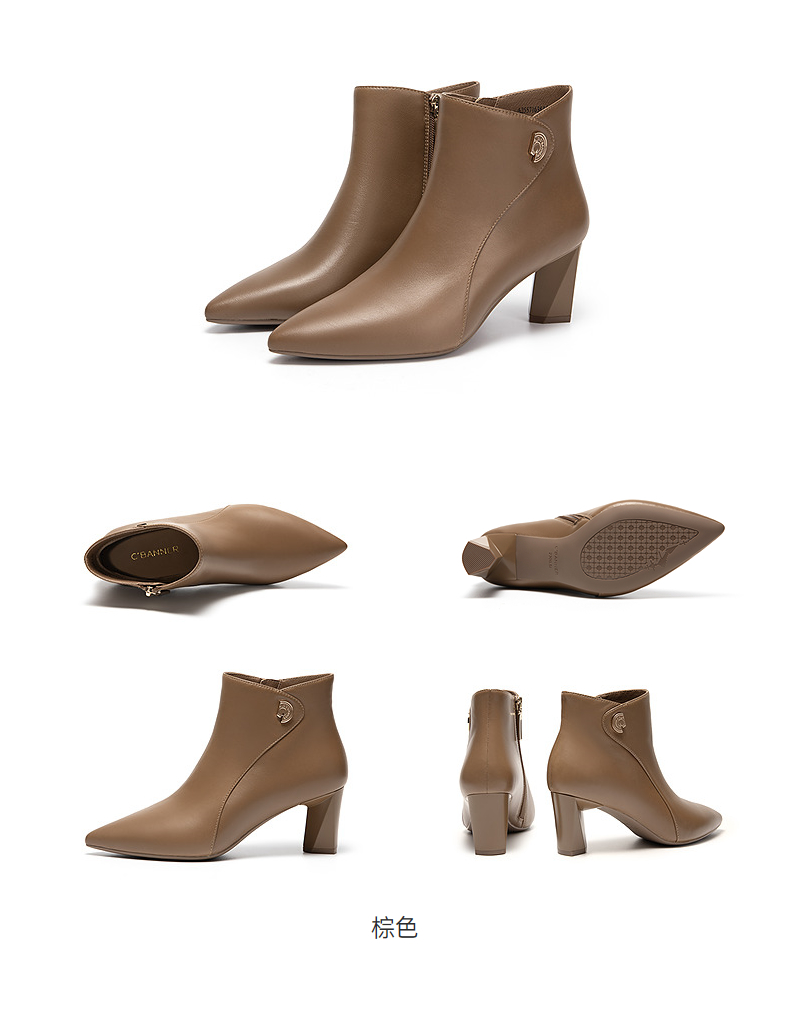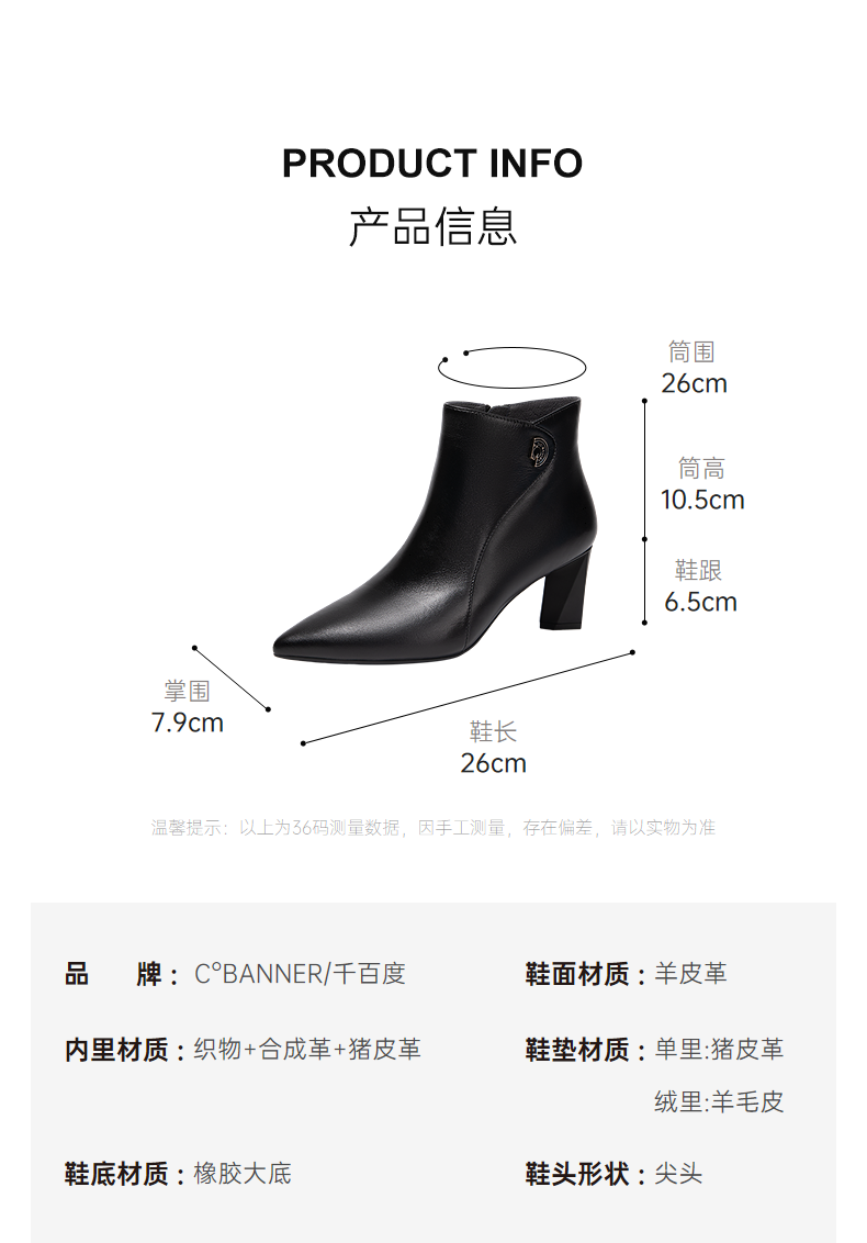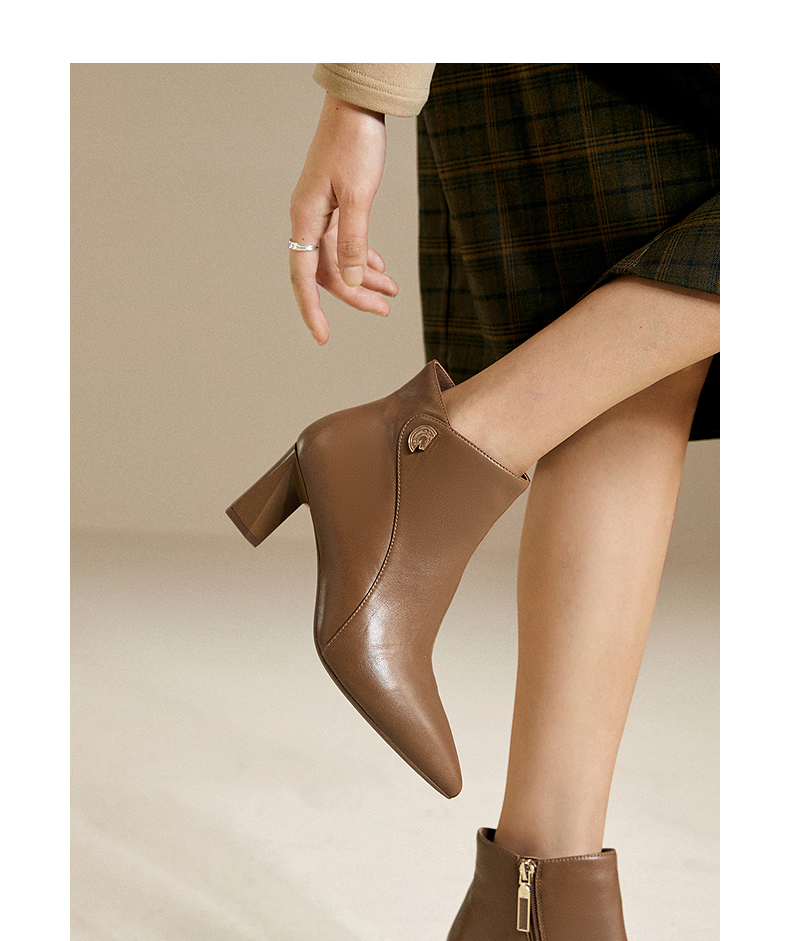 【静音系列】千百度粗高跟羊皮靴女尖头短靴时装靴A25571638