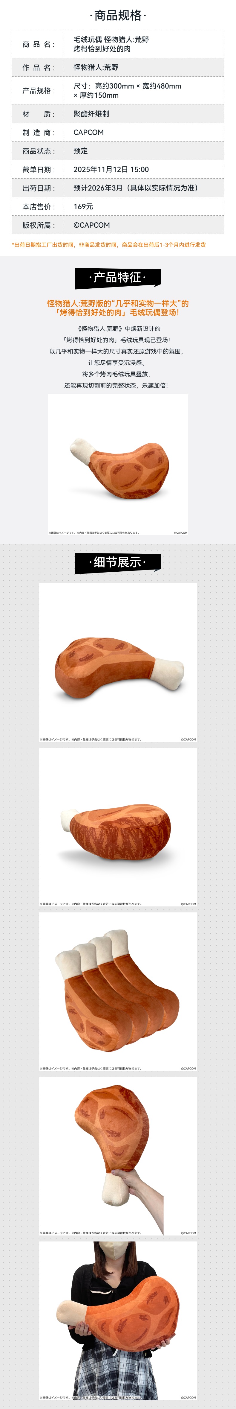 【GSC现货】毛绒玩偶 怪物猎人:荒野 烤得恰到好处的肉