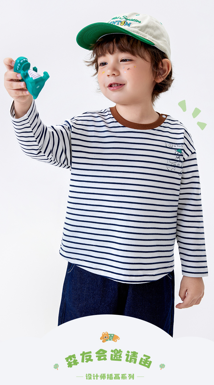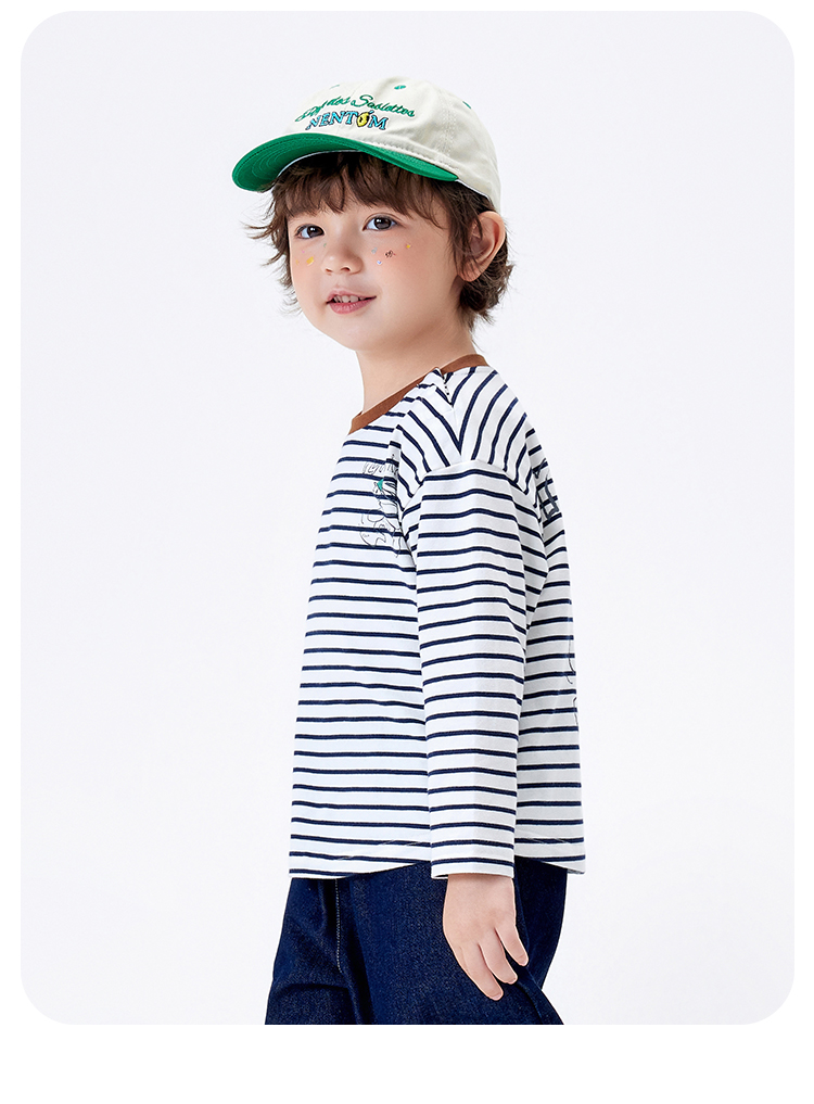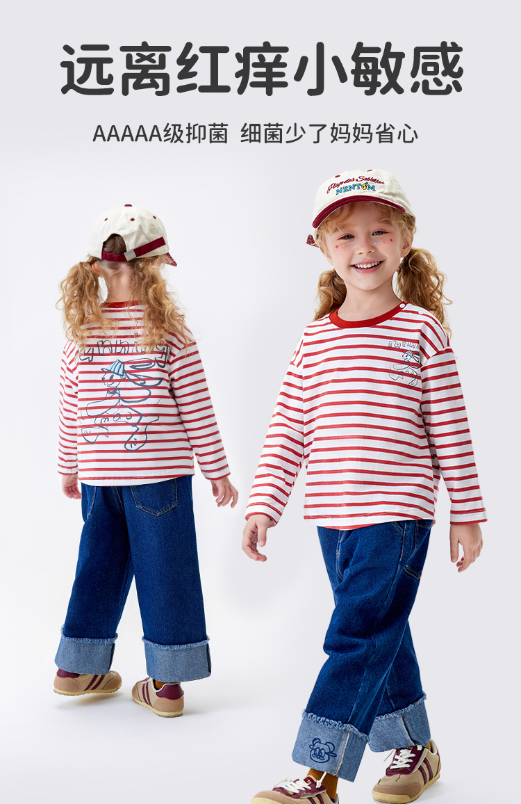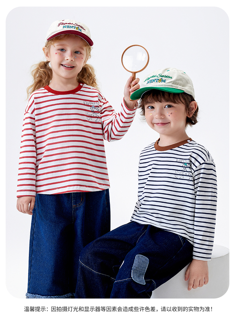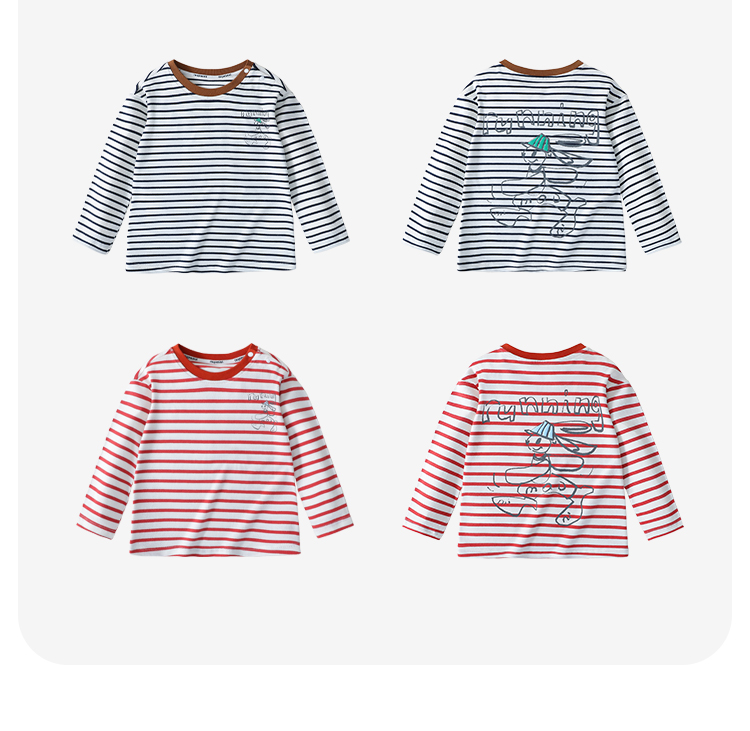 【男女同款 5A抑菌】【90-140】【MQDmini】男女童春秋长袖条纹T恤百搭上衣