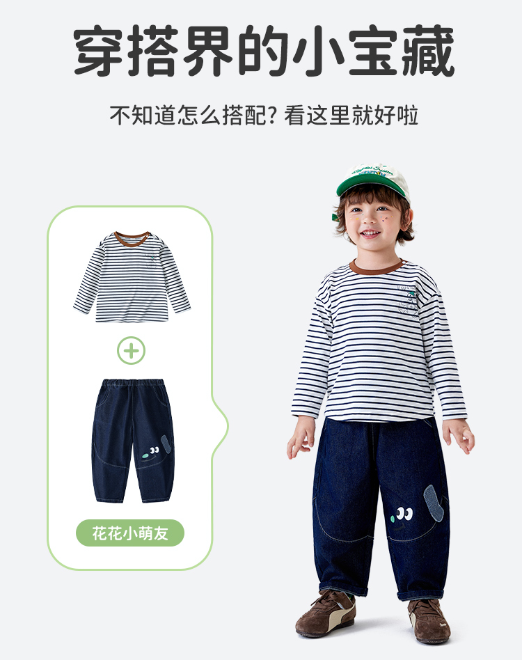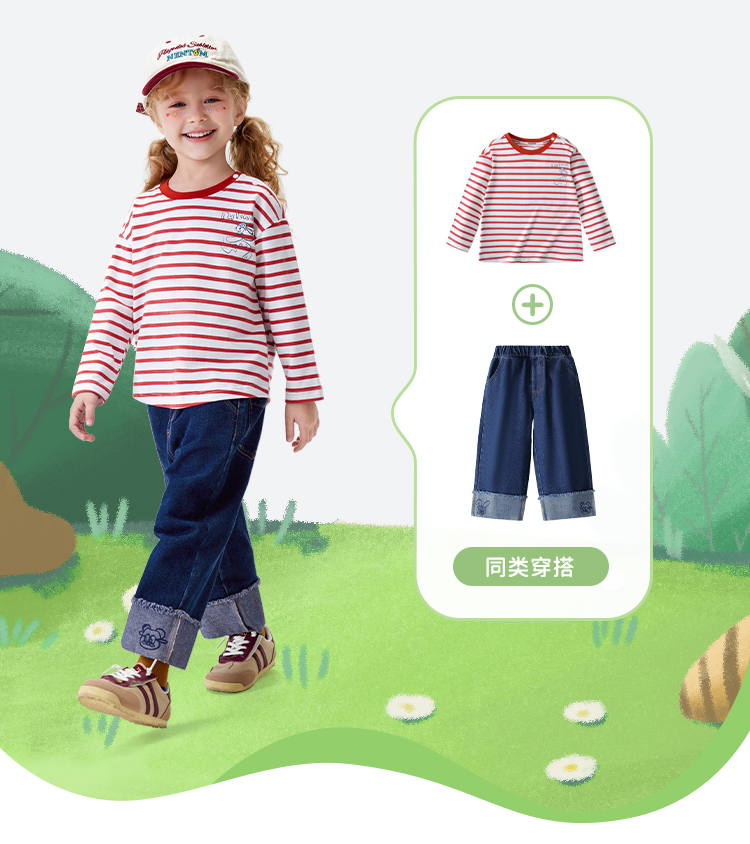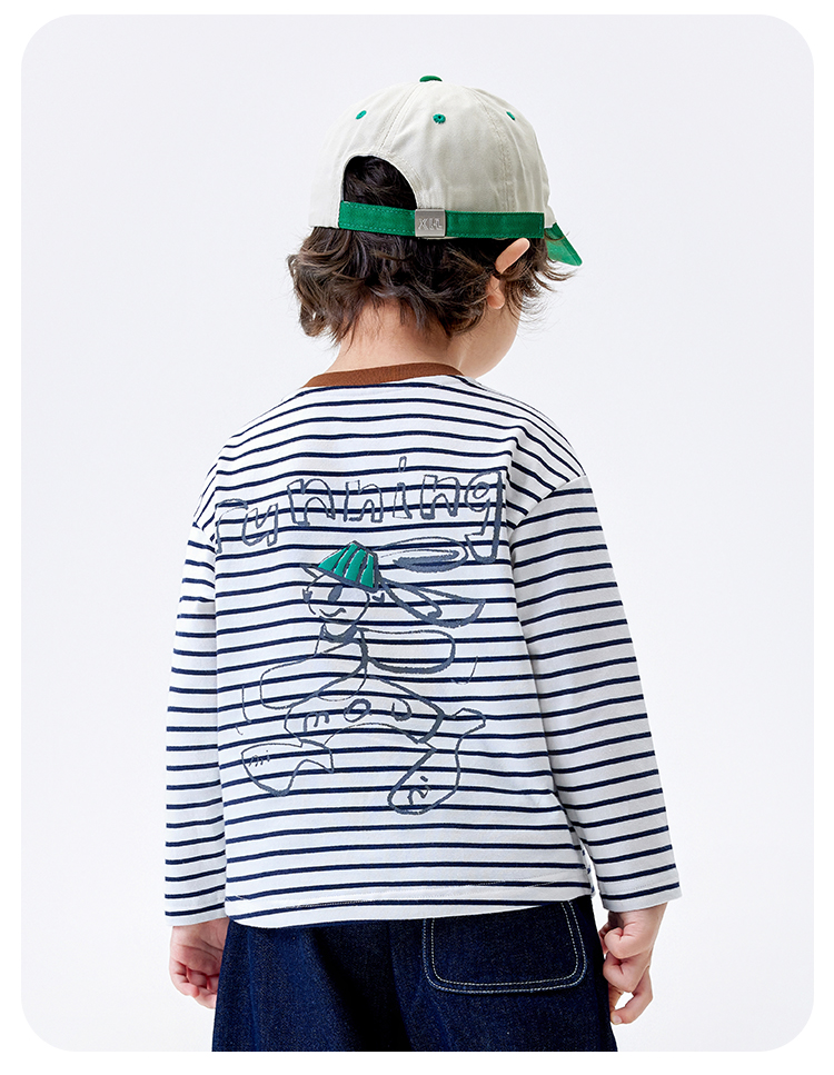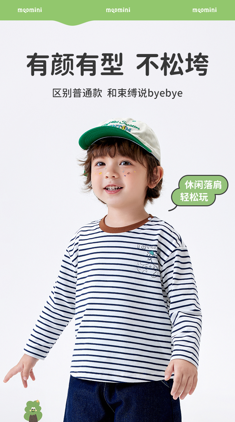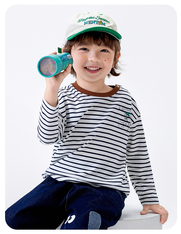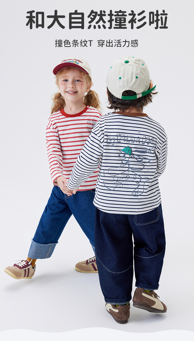 【男女同款 5A抑菌】【90-140】【MQDmini】男女童春秋长袖条纹T恤百搭上衣