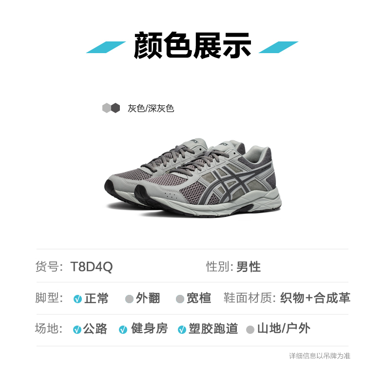 ASICS亚瑟士男跑鞋GEL-CONTEND 4透气缓震保护回弹运动鞋T8D4Q-033
