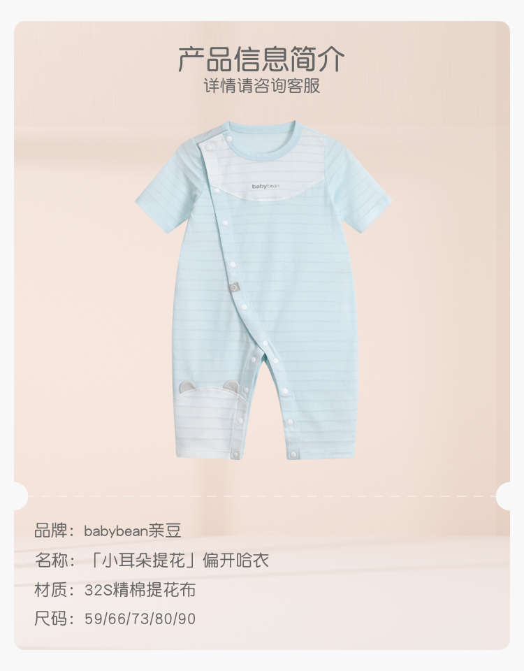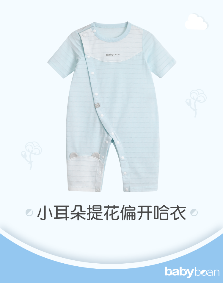 babybean亲豆新生婴儿连体衣新款春夏装男宝宝纯棉斜开扣哈衣21NY02029B0103