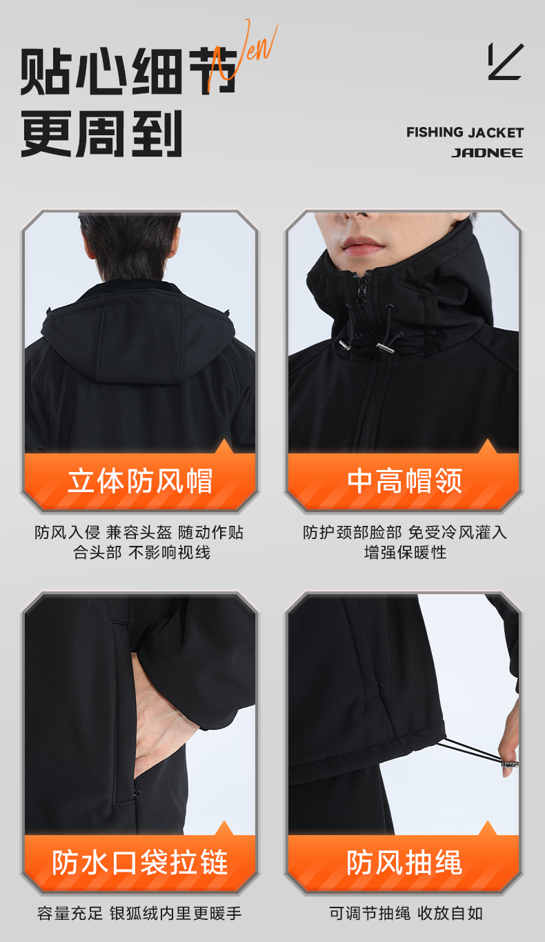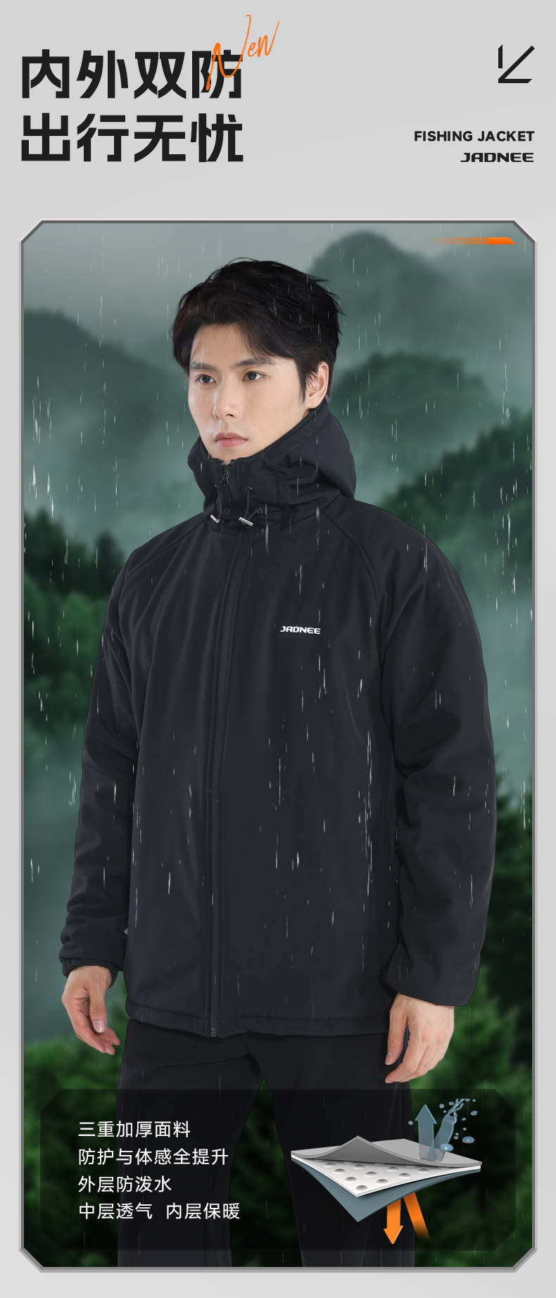 【积分】佳钓尼新品墨客冲锋衣 三防软壳多重保暖,内蓄热银狐绒 冬日坐钓保暖更安心