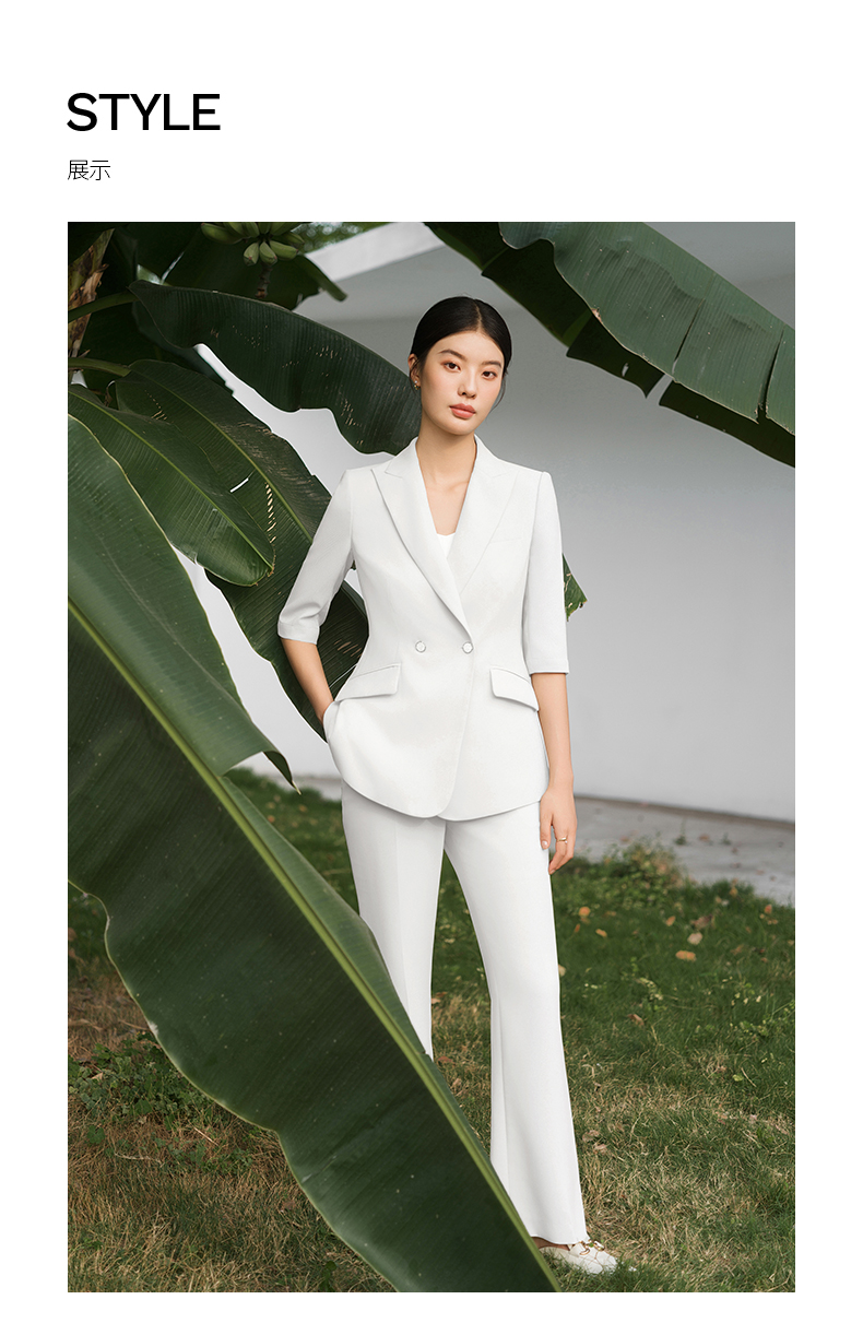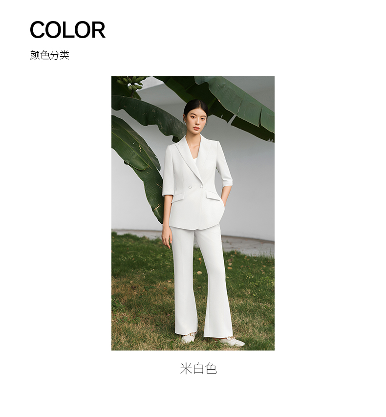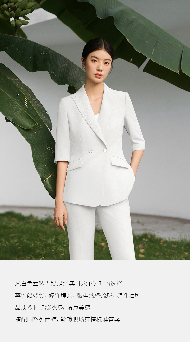 IWY/宽松休闲米白色西装套装七分袖宽松通勤商务高级女神职场西服C13510+P33510米白色