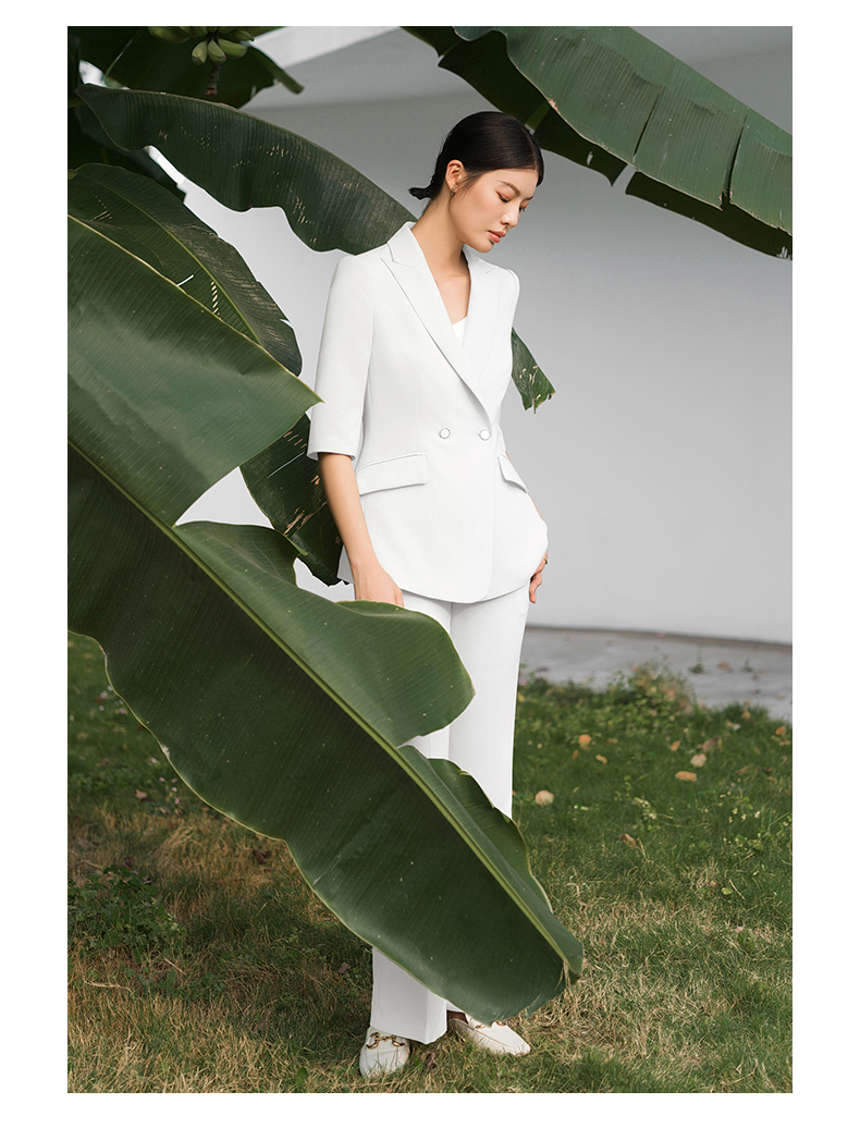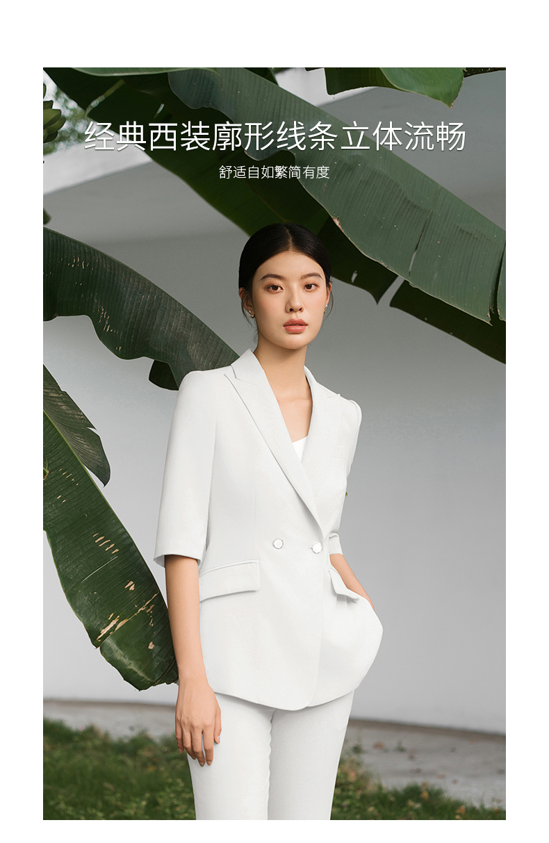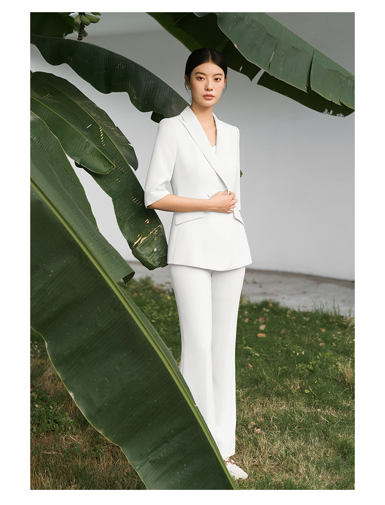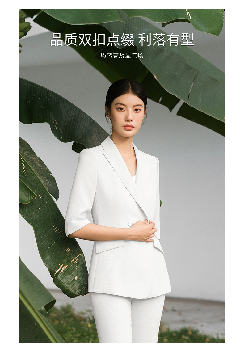IWY/宽松休闲米白色西装套装七分袖宽松通勤商务高级女神职场西服C13510+P33510米白色