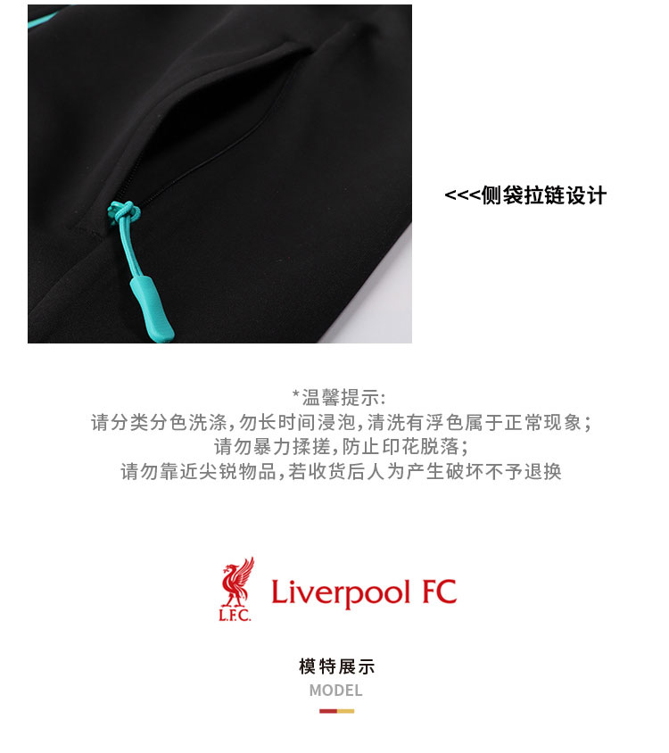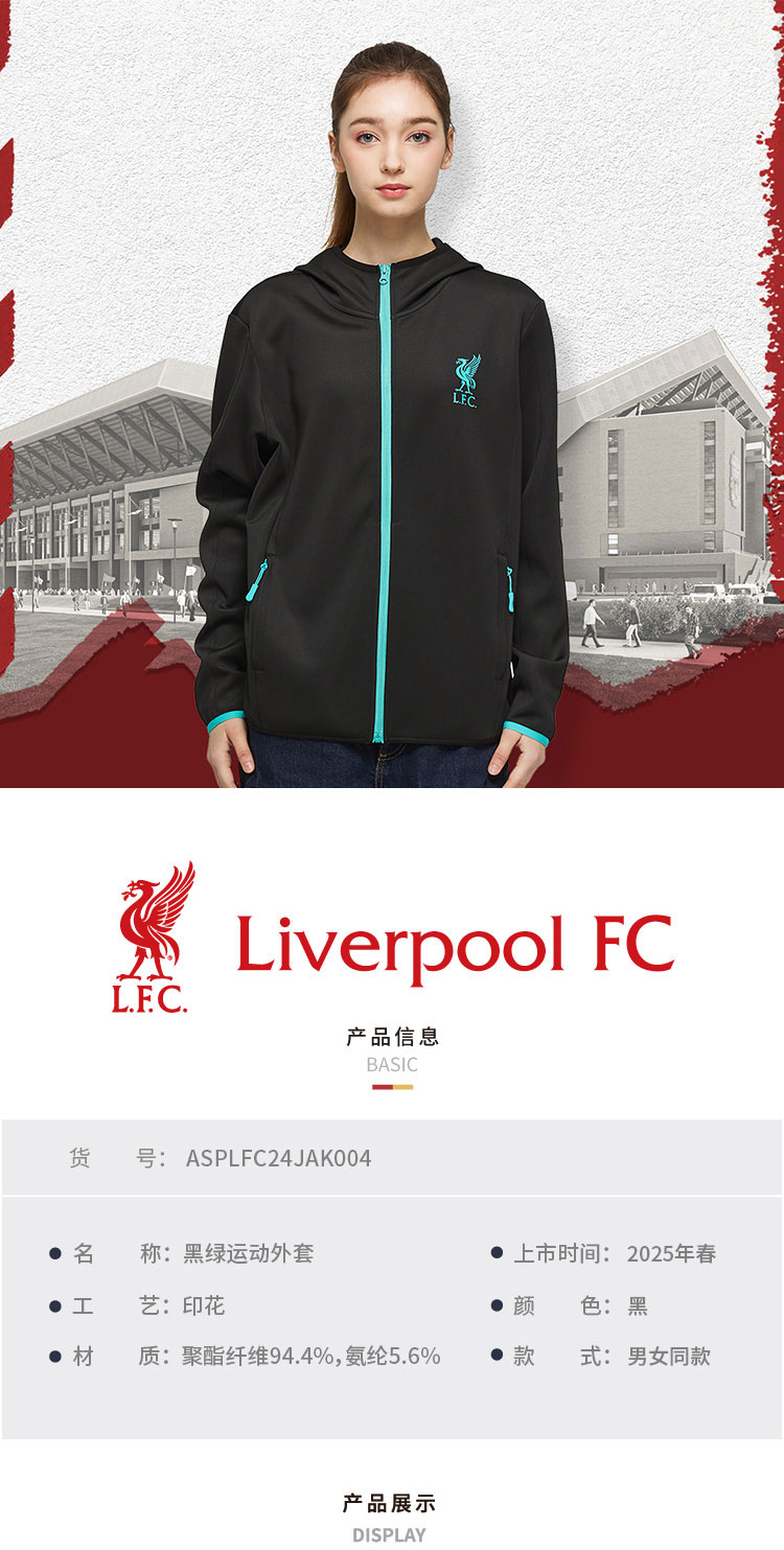【官方正版】利物浦俱乐部 | 黑绿运动外套足球迷休闲训练夹克