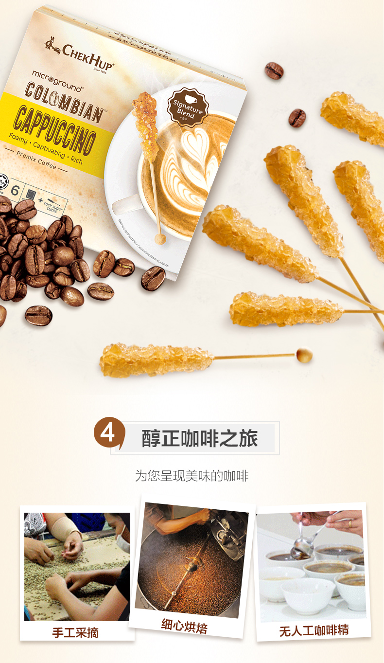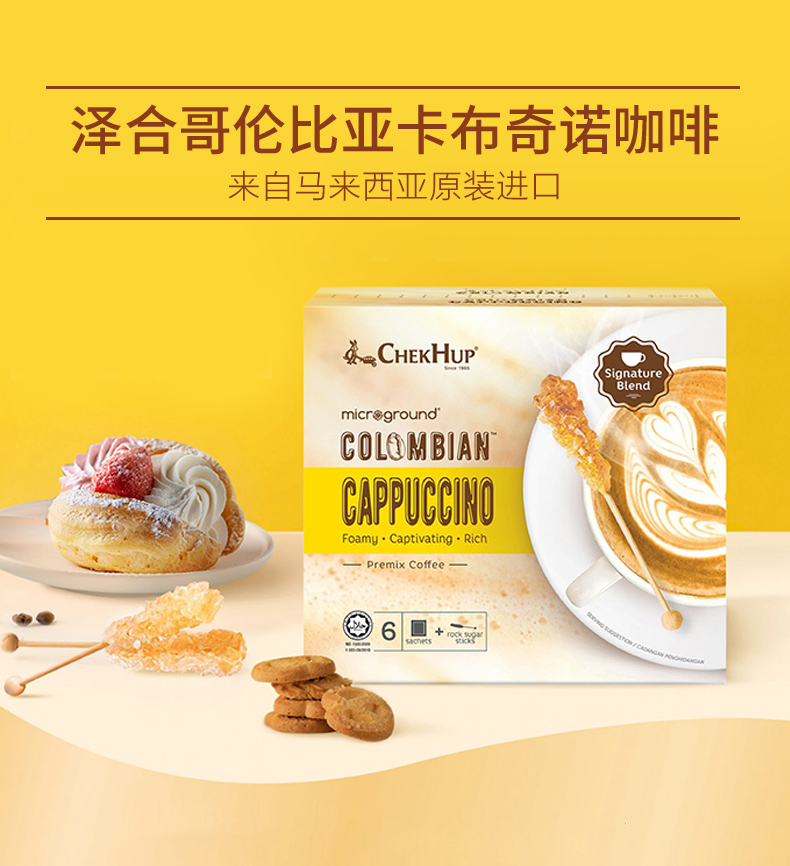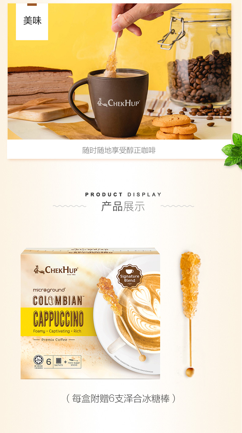马来西亚泽合卡布奇诺咖啡228g/024609 独立冰糖棒设计保留咖啡本香