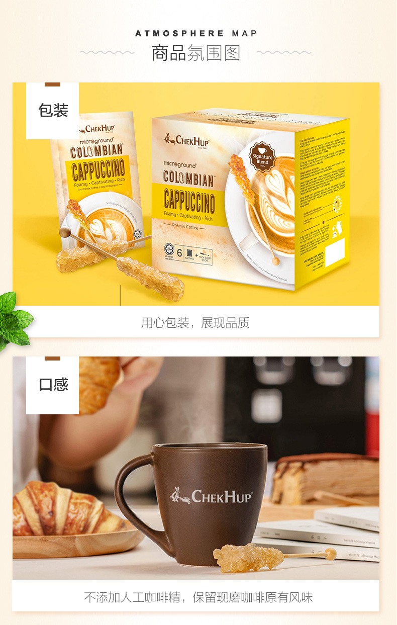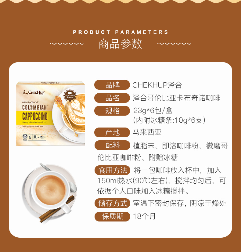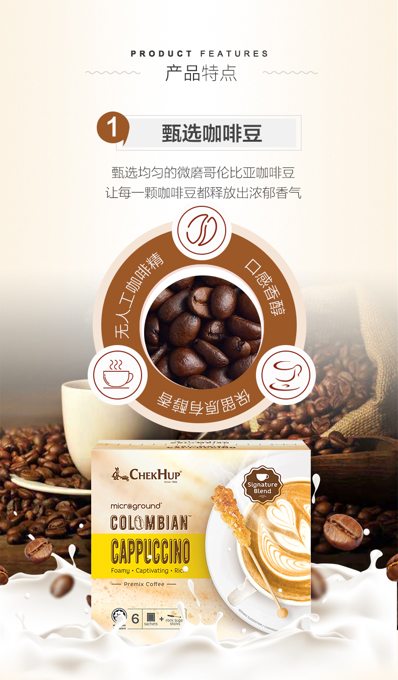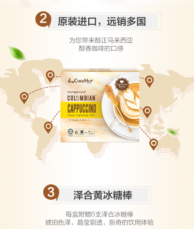 马来西亚泽合卡布奇诺咖啡228g/024609 独立冰糖棒设计保留咖啡本香