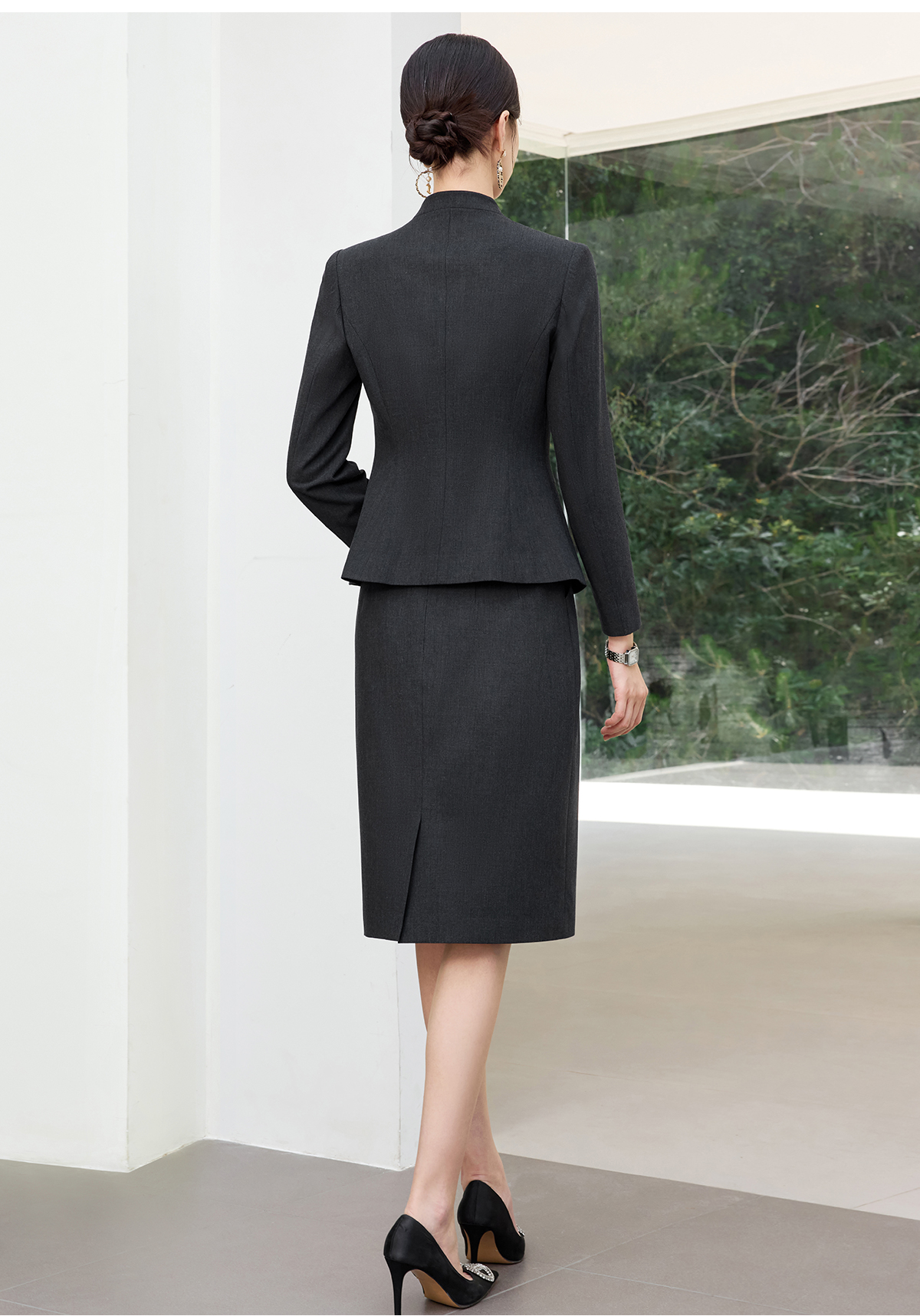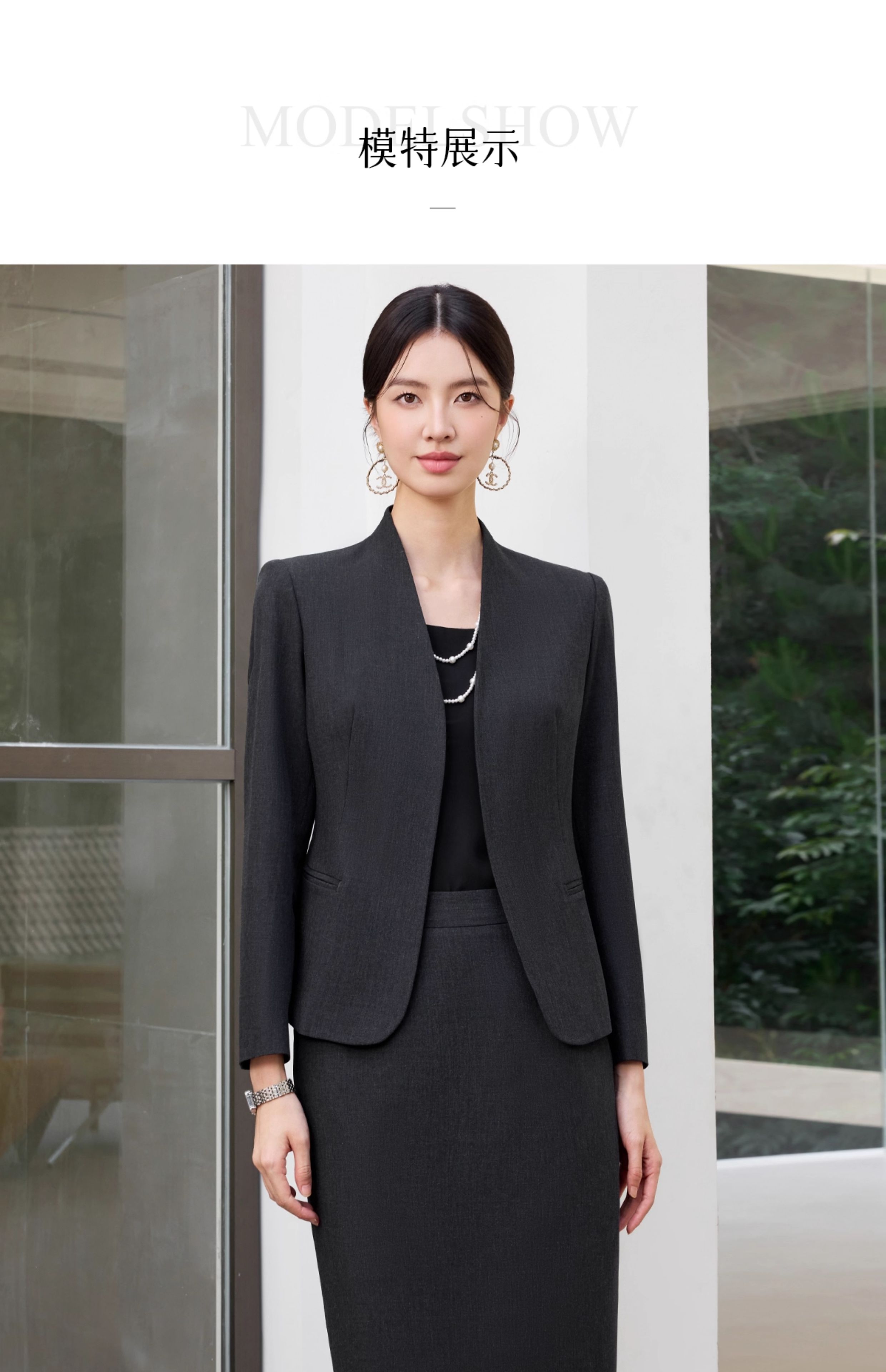 IWY/高级感黑灰色西装套裙女秋冬正式场合酒店接待职业装25CS811
