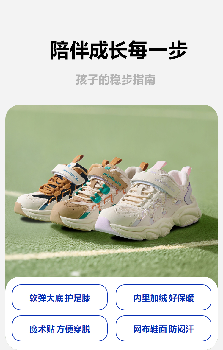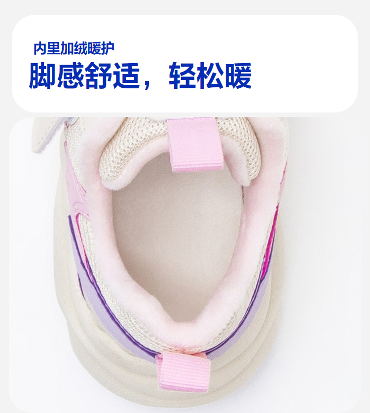 迷你巴拉男女童儿童内里加绒保暖跃步鞋慢跑鞋