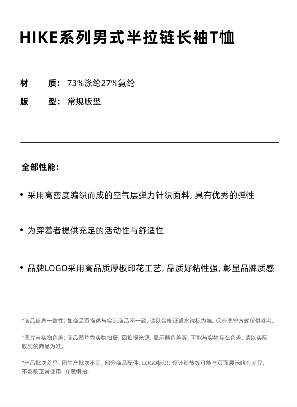 Tutwo|男式半拉链长袖T恤 TTAJN911743
