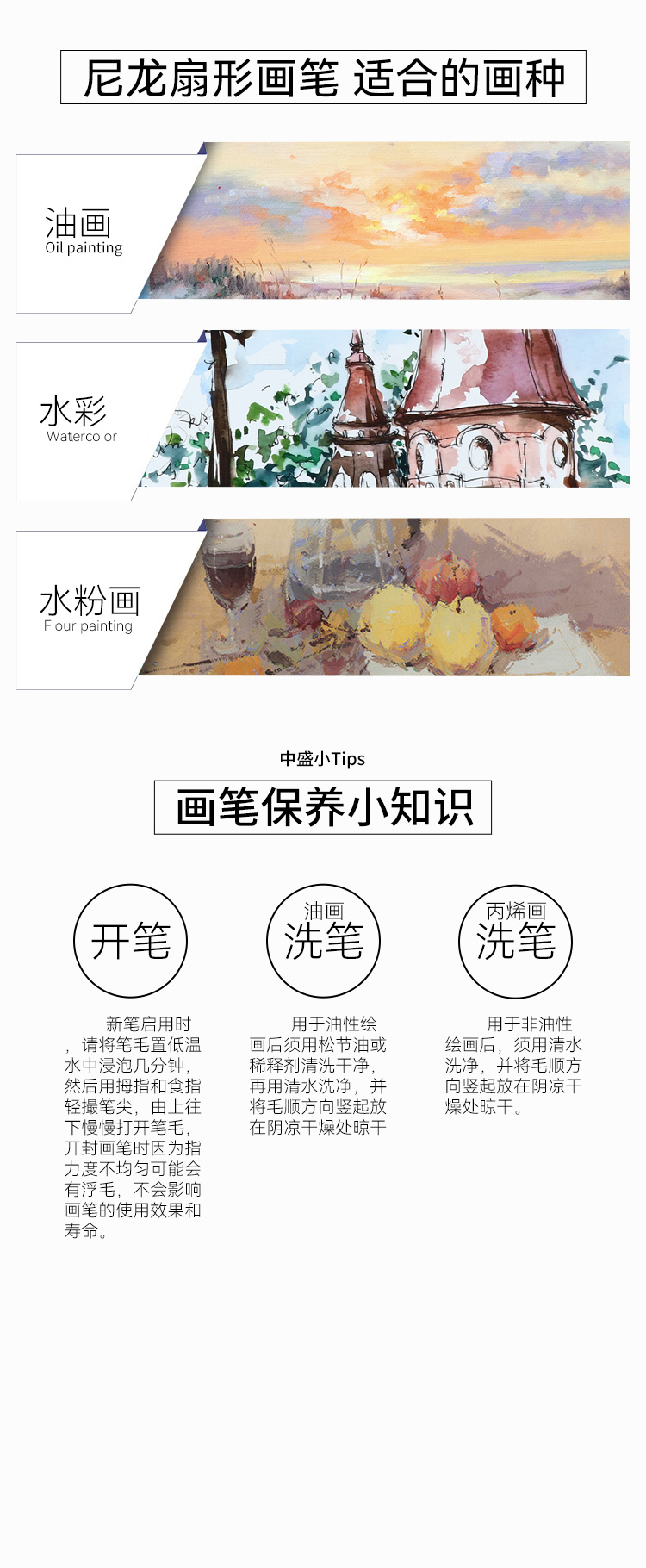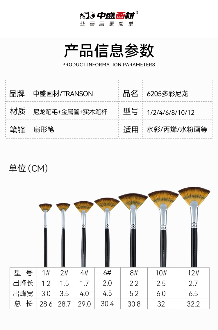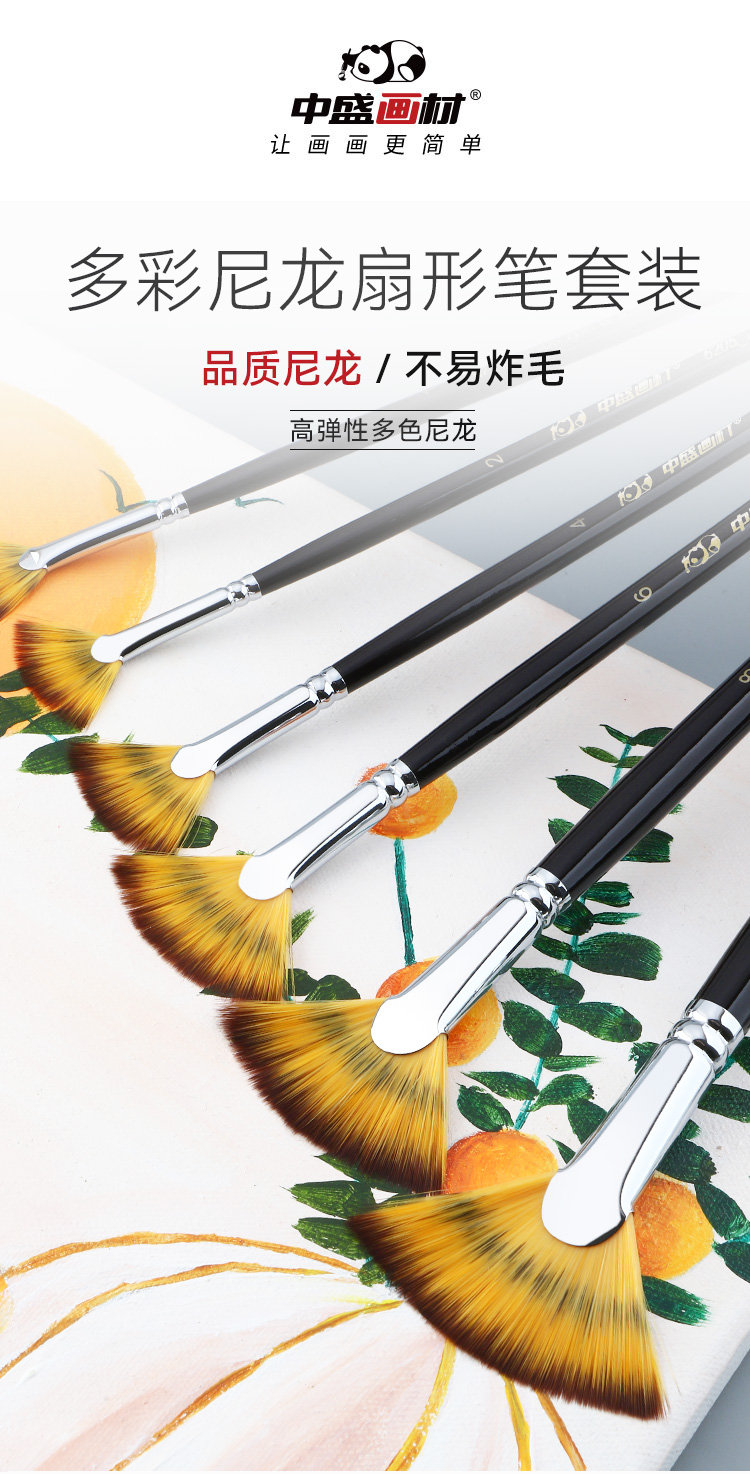 中盛画材多彩尼龙扇形笔扇形刷油画笔/水粉笔/水彩笔单支6205