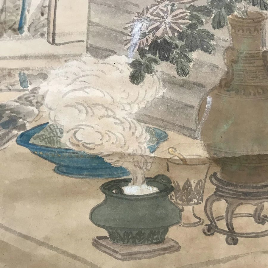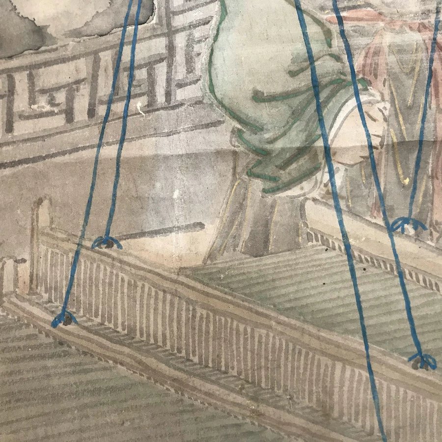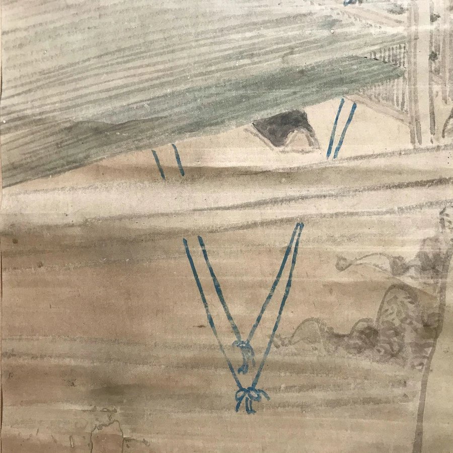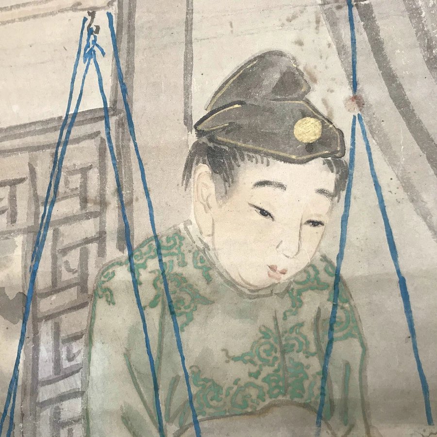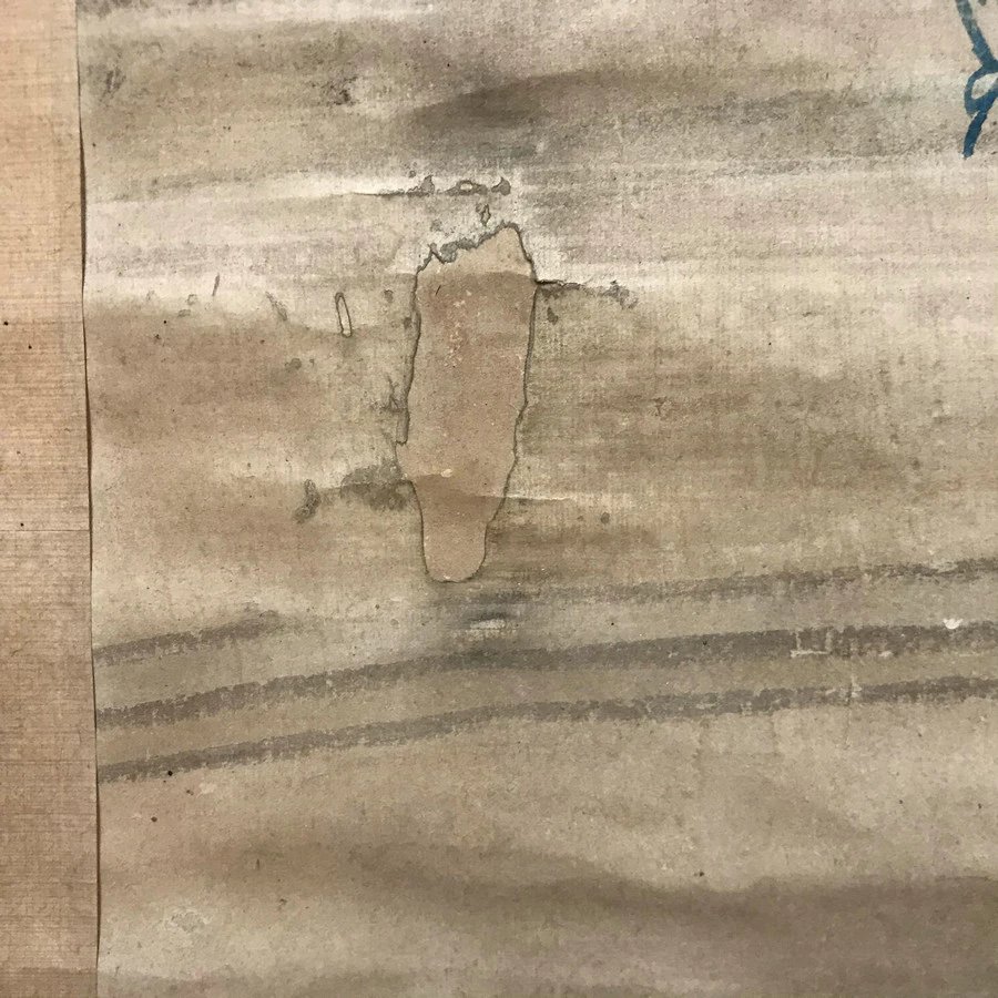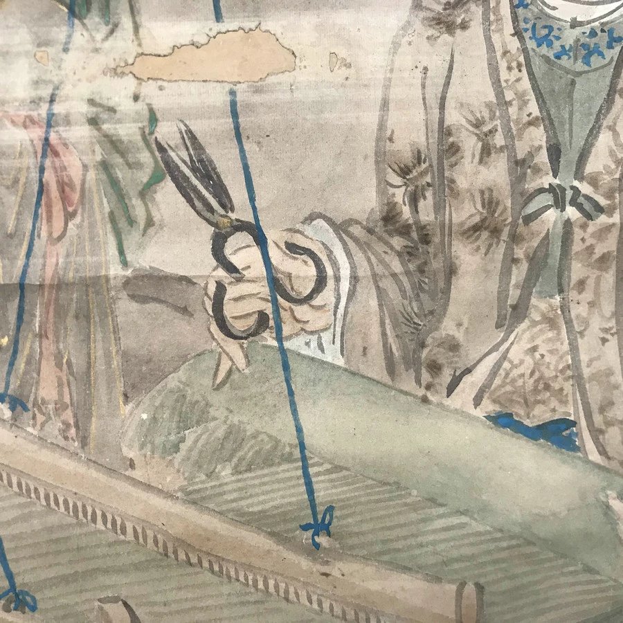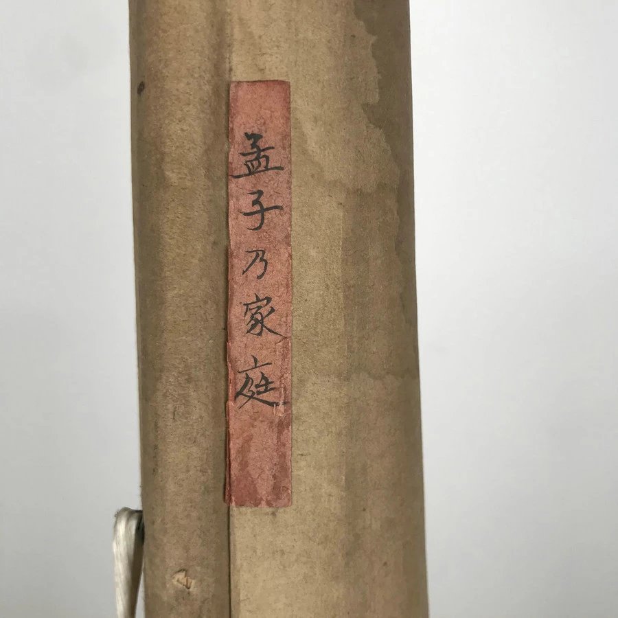 水墨画卷轴 孟母断织图 纸本装裱 无盒尺寸:185*70cm画幅年代久远,外观有轻微开裂、破损或污迹,原吊绳遗失,详情见图