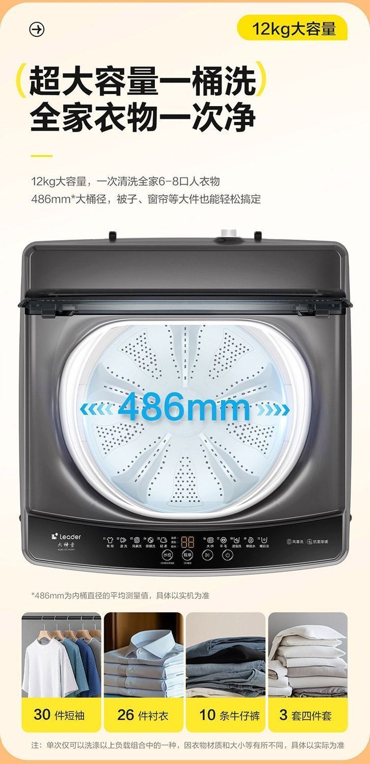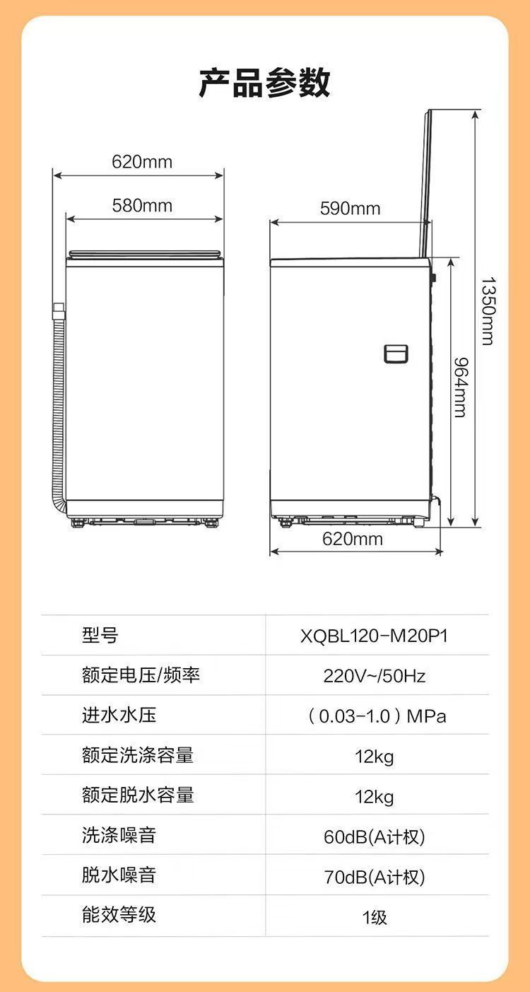 海尔统帅XQBL120-M20P1全自动波轮洗衣机12kg公斤一级能效