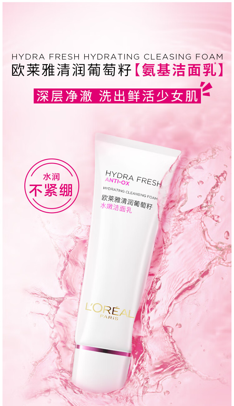 L'oreal/欧莱雅 清润葡萄籽水嫩洁面乳 125ml