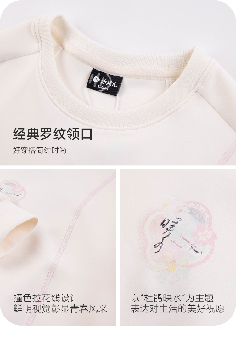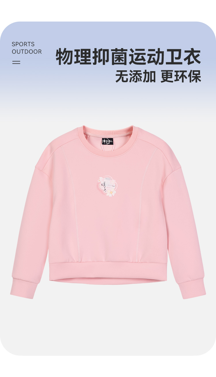 水孩儿童装春季新款女童卫衣运动弹力抑菌中大童套头衫休闲宽松款