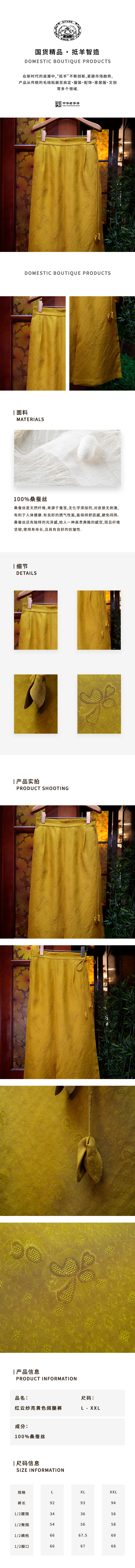 红云纱亮黄色阔腿裤