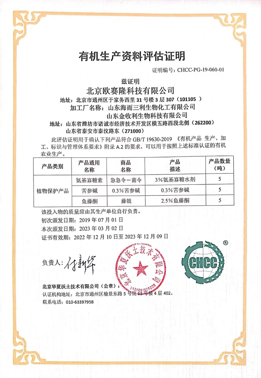 清源保的苦参碱,鱼藤酮;欧赛隆的急急令(氨基寡糖素),苏云金杆菌,菌钾;碧护;红枣酵素;天惠绿汁