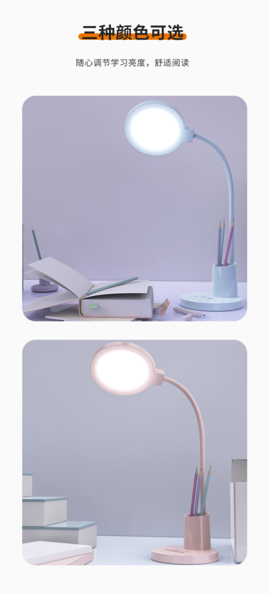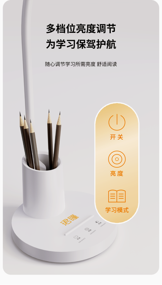 人性化设计,买的不止是护眼灯 可当作手机支架,也可当作笔筒 买一个台灯的钱get要多种用途~