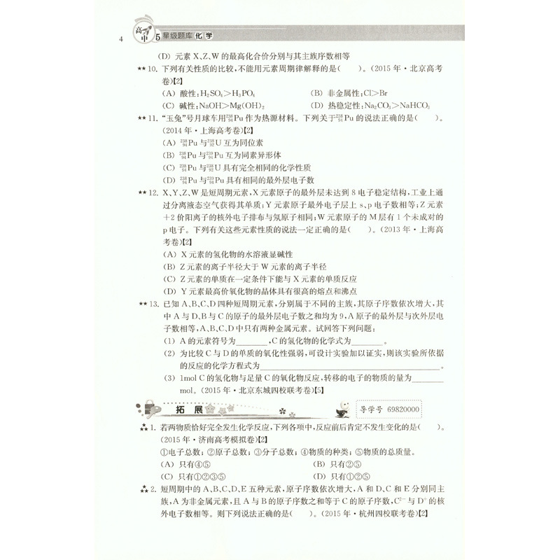 高中五星级题库 化学 赠答案详解+错题本 星级题库 教辅中的常春藤 经典题 拓展题 全真题 每日训练 直击高考 上海科技教育出版社
