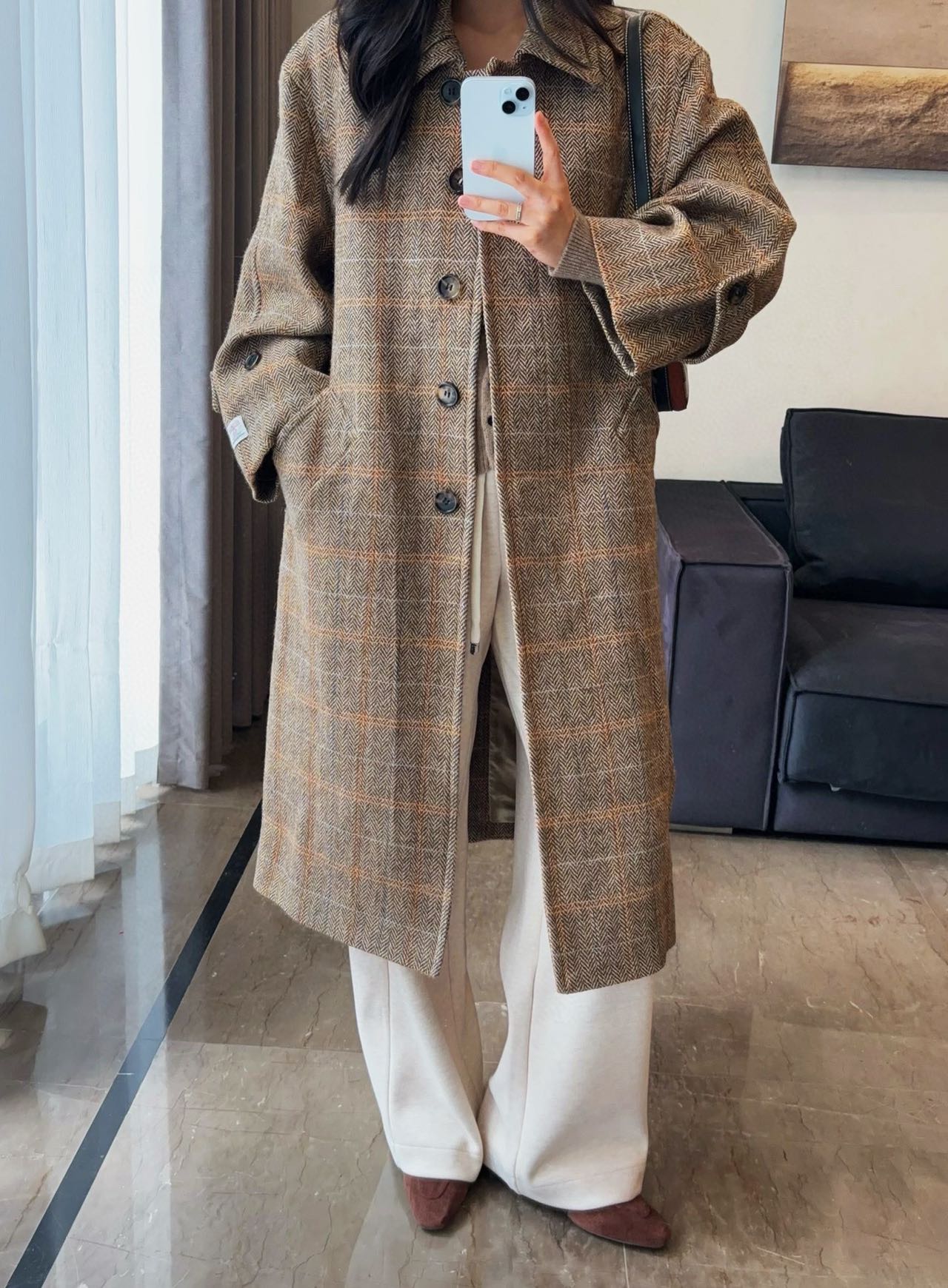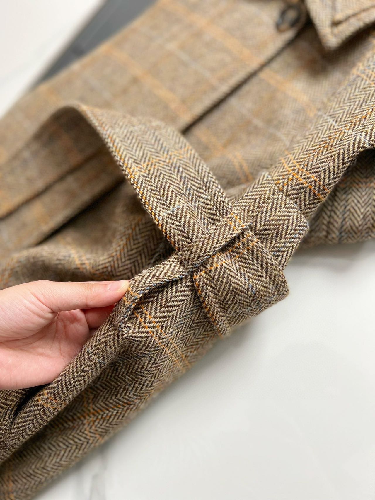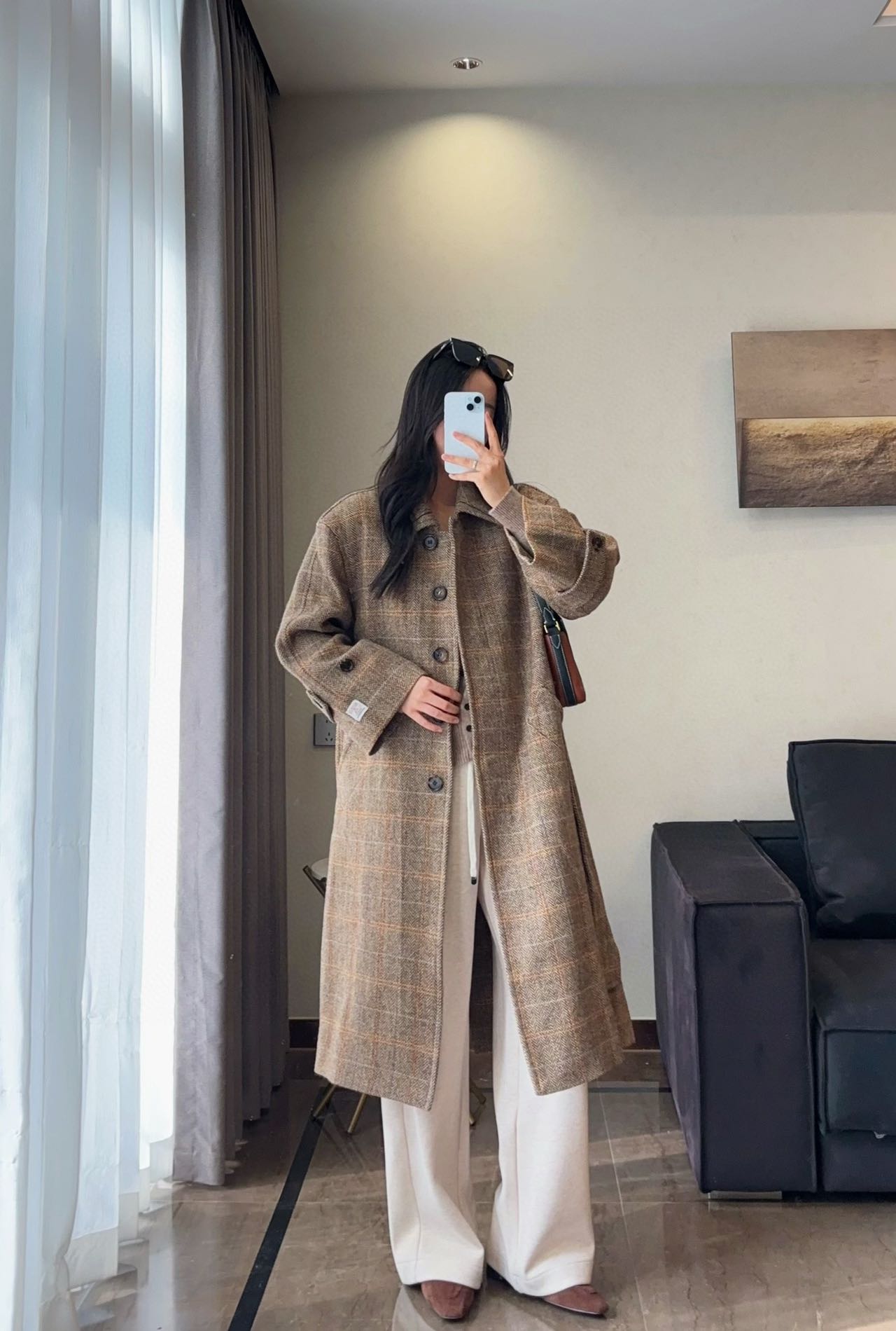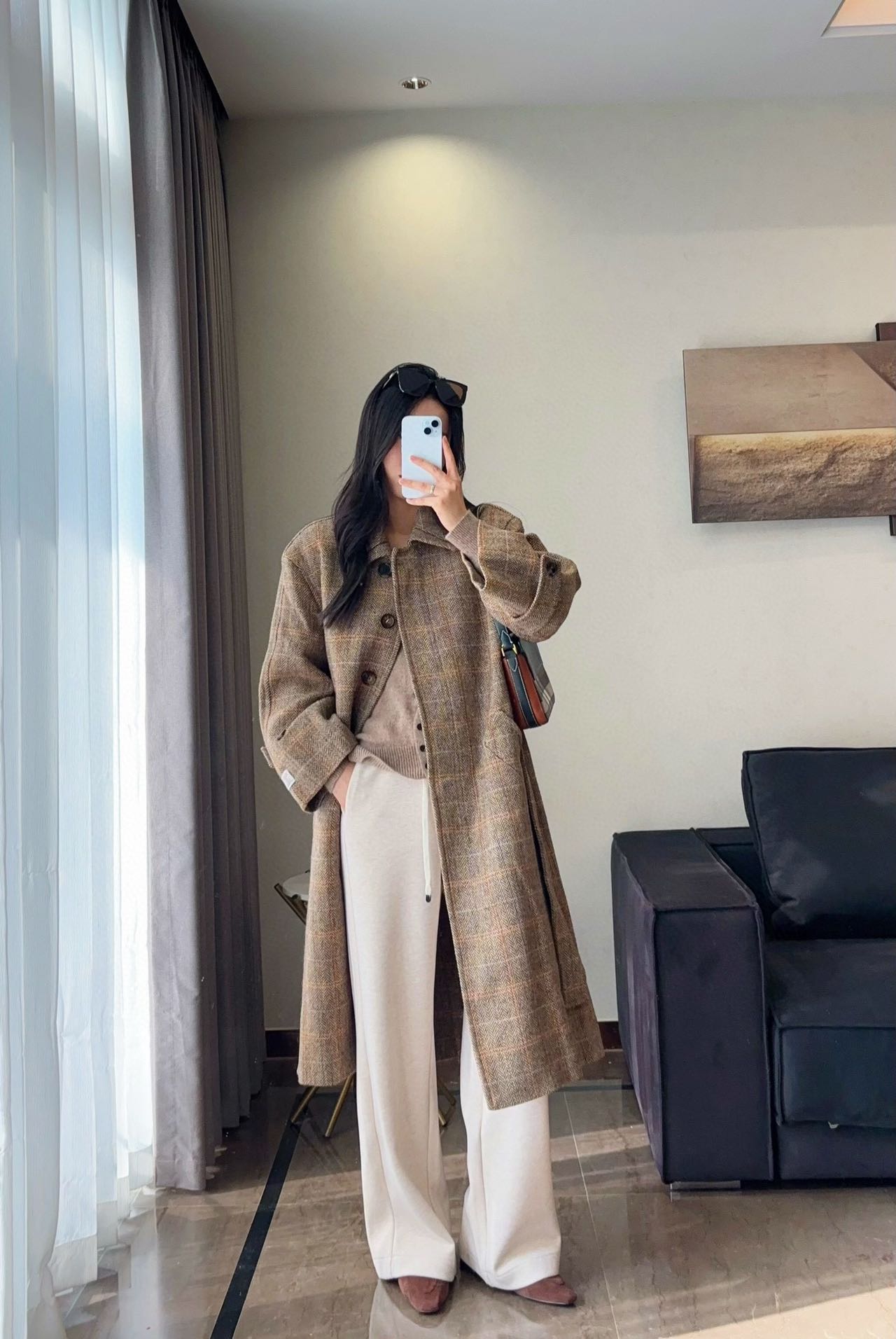 . TOP级别的y料,羊毛纱线界的大佬!凡是用了这家羊毛的,你就穿吧!G上五位数的品质!粗纺全羊毛复古格纹,从羊毛的清洁到染色,将染料渗透到每一个细小纤维中,整个染色流程非常耗费工时。先染出彩色的羊毛,再混色纺纱,呈现漂亮的彩纱效果。再由多种不同颜色的彩纱编织成独特的复古格纹,织面层次感非常丰富高级!