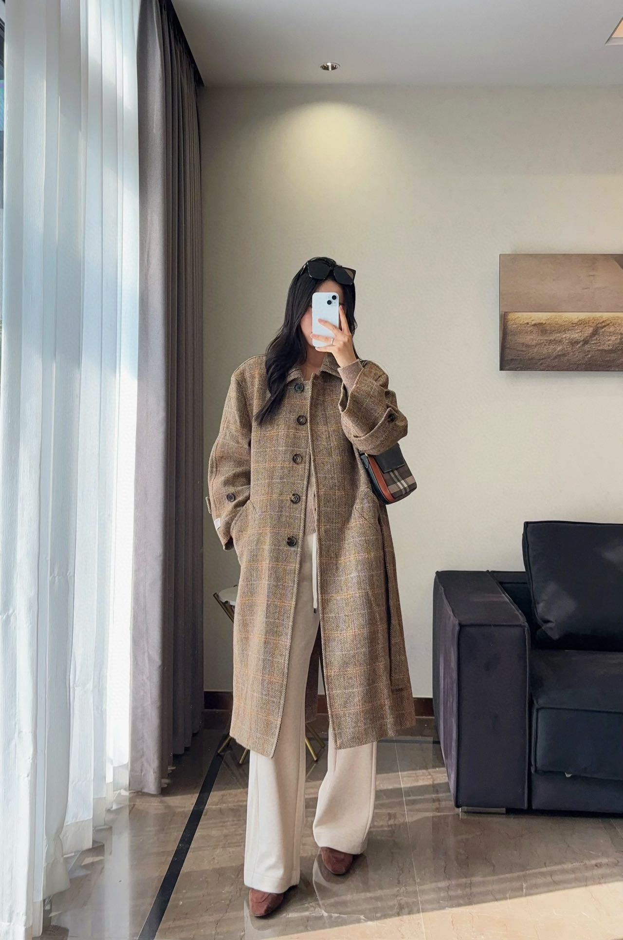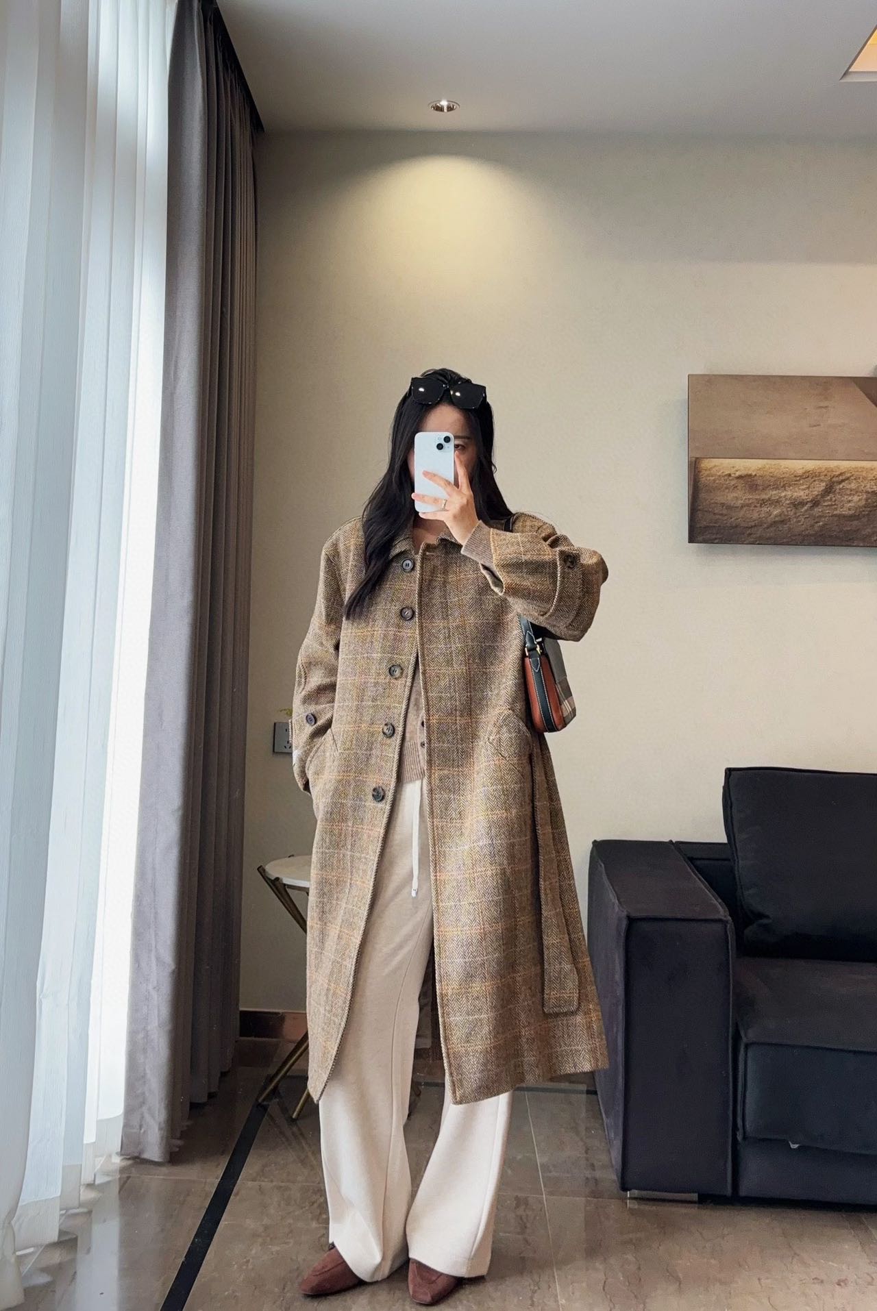 ⚠️今天这款是很经典的英伦风,采用人字纹、千鸟格、混色纱等元素组合,使得成衣看起来沉稳又不失细节,增加了面料的层次感和立体感!⚠️而经典的大地色系又很高级,非常适合亚洲人肤色,而且辨识度拉满,各个方面都经得起蕞挑剔的眼光,稳稳妥妥的镇柜单品!必入!!